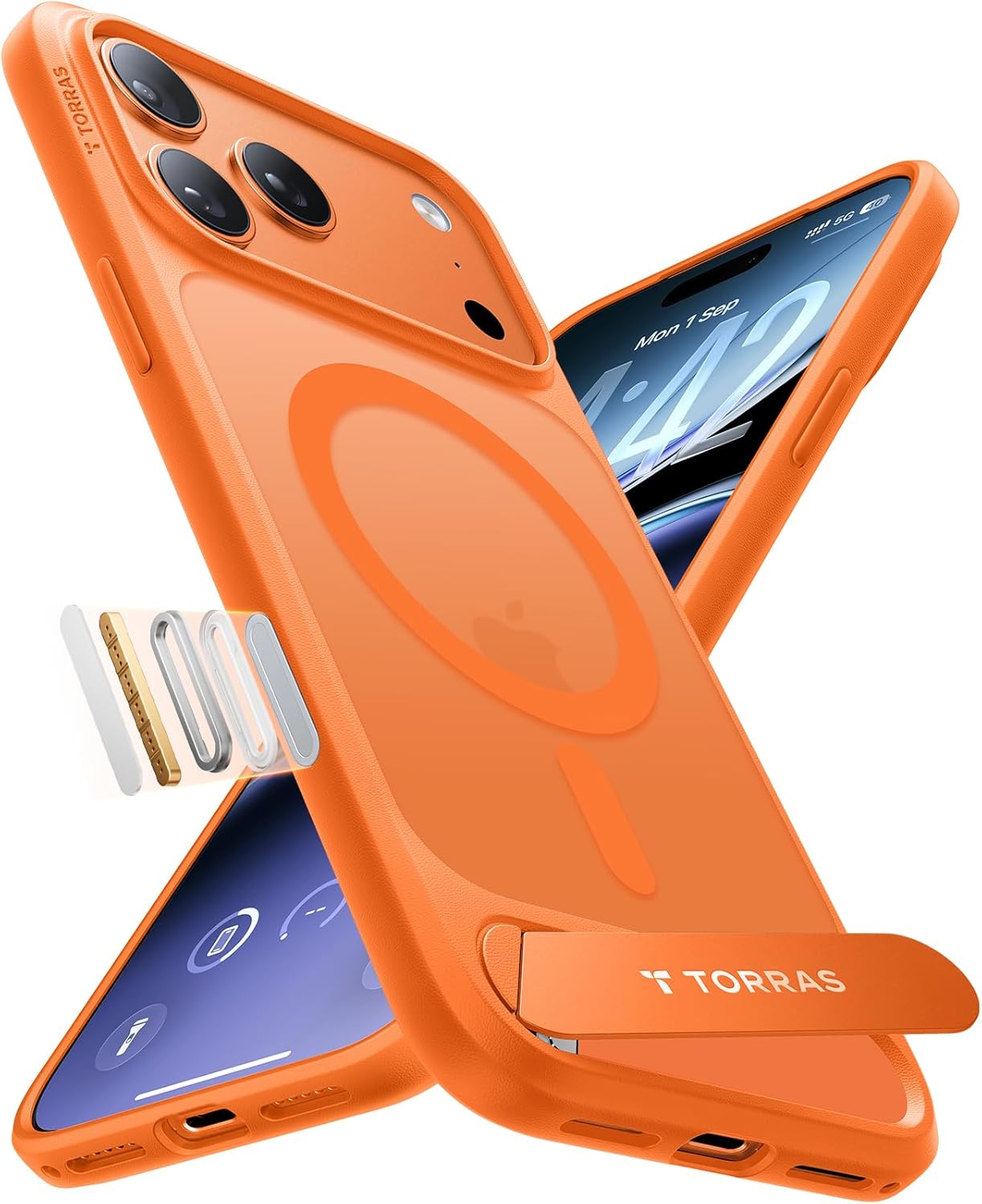 TORRAS Ostand L1 калъф за iPhone 17 Pro Max с поставка тип „крило“, съвместим с аксесоари MagSafe, 3,66 м, сертифициран с военна защита, удароустойчив магнитен калъф за мобилен телефон iPhone 17 Pro Max