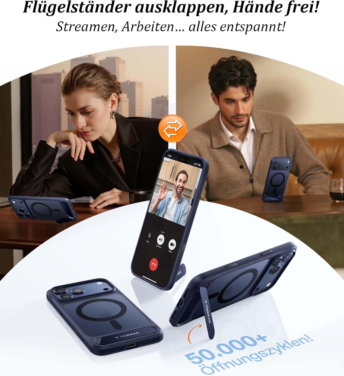 TORRAS Ostand L1 калъф за iPhone 17 Pro Max с поставка тип „крило“, съвместим с аксесоари MagSafe, 3,66 м, сертифициран с военна защита, удароустойчив магнитен калъф за мобилен телефон iPhone 17 Pro Max