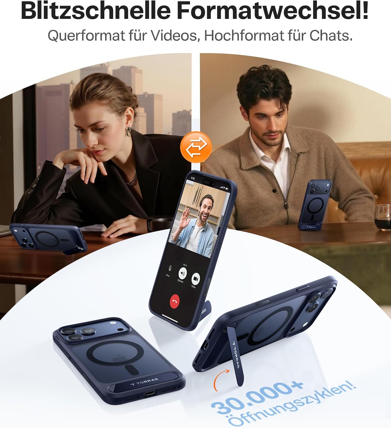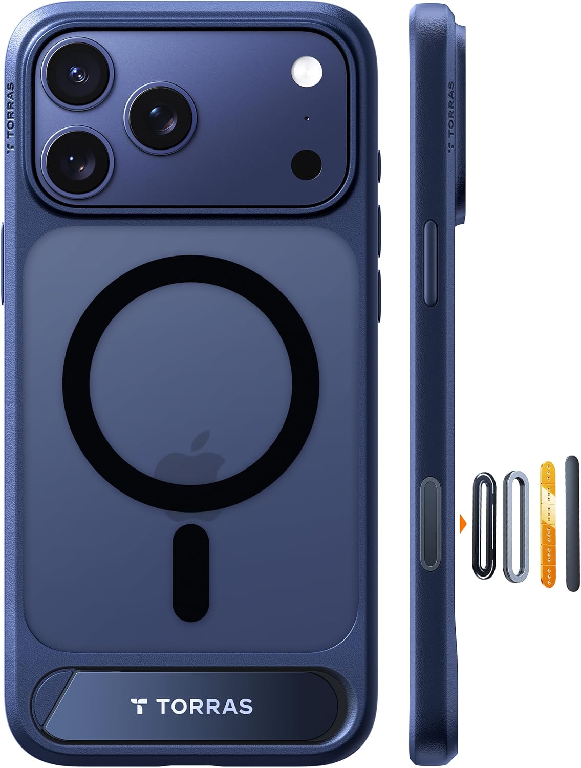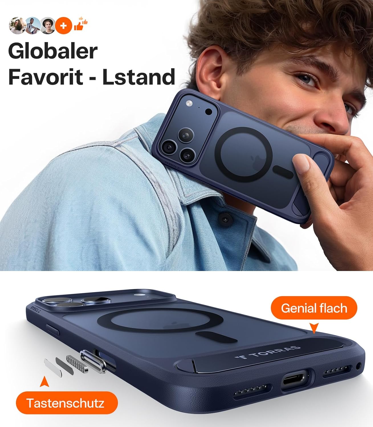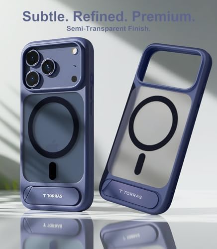 TORRAS Ostand L1 за iPhone 17 Pro, калъф за MagSafe с капацитивни бутони и невидима стойка, военна защита, сертифициран магнитен калъф за мобилен телефон за iPhone 17 Pro, удароустойчив.
