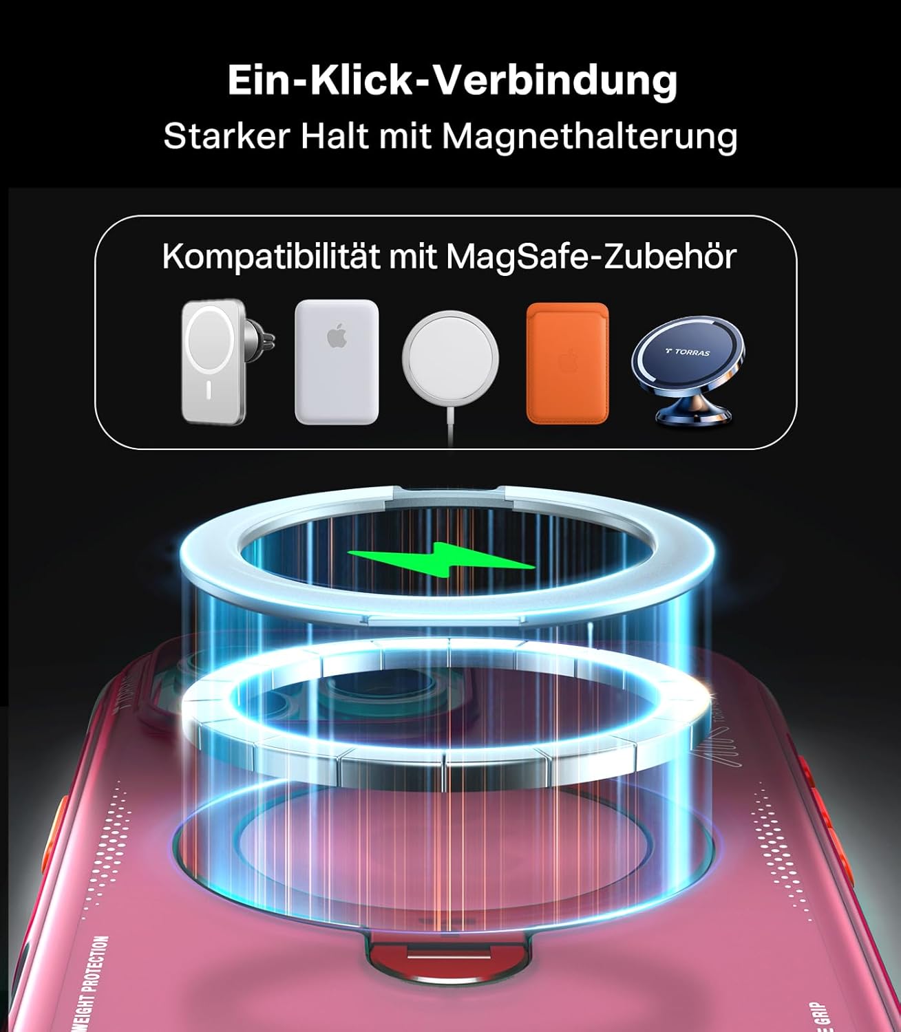 • Затворено: Силен магнитен пръстен, бързо зареждане: Невидим О-пръстен с вграден магнит, изработен от най-добрия материал N56 с технология Halbach, той осигурява силна магнитна сила от 18 N за превъзходна здравина и стабилност. Лесно свържете калъфа си към стойката за кола MagSafe за стабилна навигация. Насладете се на безпроблемна и сигурна връзка!