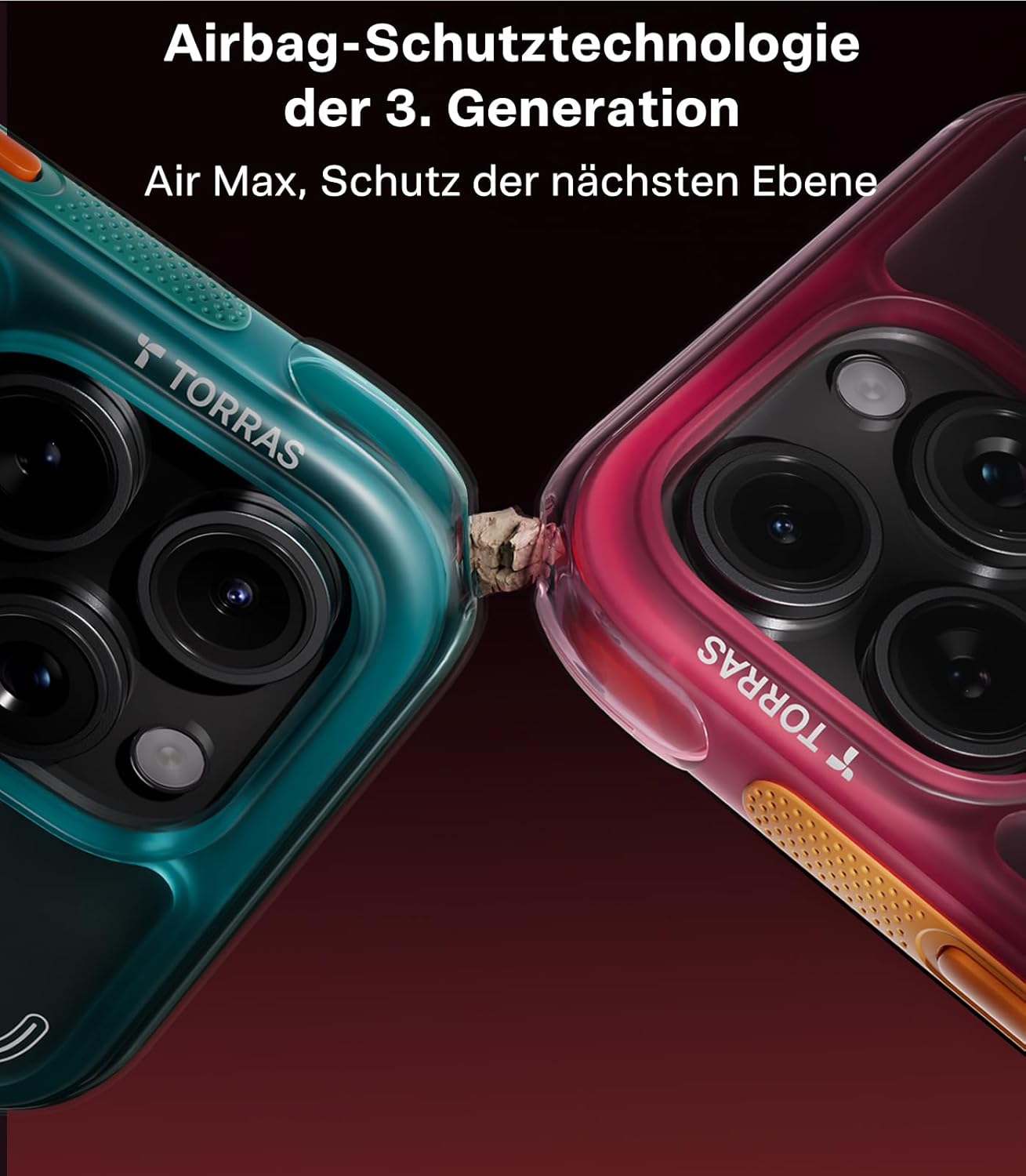 • Иновативна двуслойна структура на въздушните възглавници: С патентованата технология на въздушните възглавници на TORRAS – вдъхновена от омекотяването на съвременните маратонки. Специалната структура на въздушните възглавници абсорбира ударите и надеждно защитава – със 100% сила на отскок и устойчивост на удар над военния стандарт. Тествана при над 5002 падания – независимо дали е при колоездене, туризъм или ежедневие. Издържа дори на неочаквани падания.