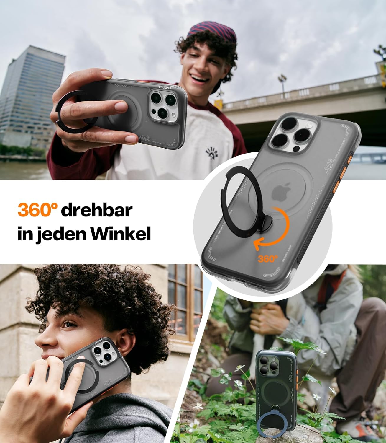 • [360-градусов пръстен за стойка: Стабилизиран за всеки желан ъгъл: Завъртането осигурява 360° завъртане и четириточково позициониране за най-стабилен ъгъл. С максимална гъвкавост можете да регулирате хоризонталния ъгъл от 15° до 160° и вертикалния от 30° до 92°. Независимо дали провеждате видеоконференции или дълги разговори, калъфът може лесно да се регулира до желания ъгъл за максимален комфорт в свободното време и по-голяма ефективност на работа.]