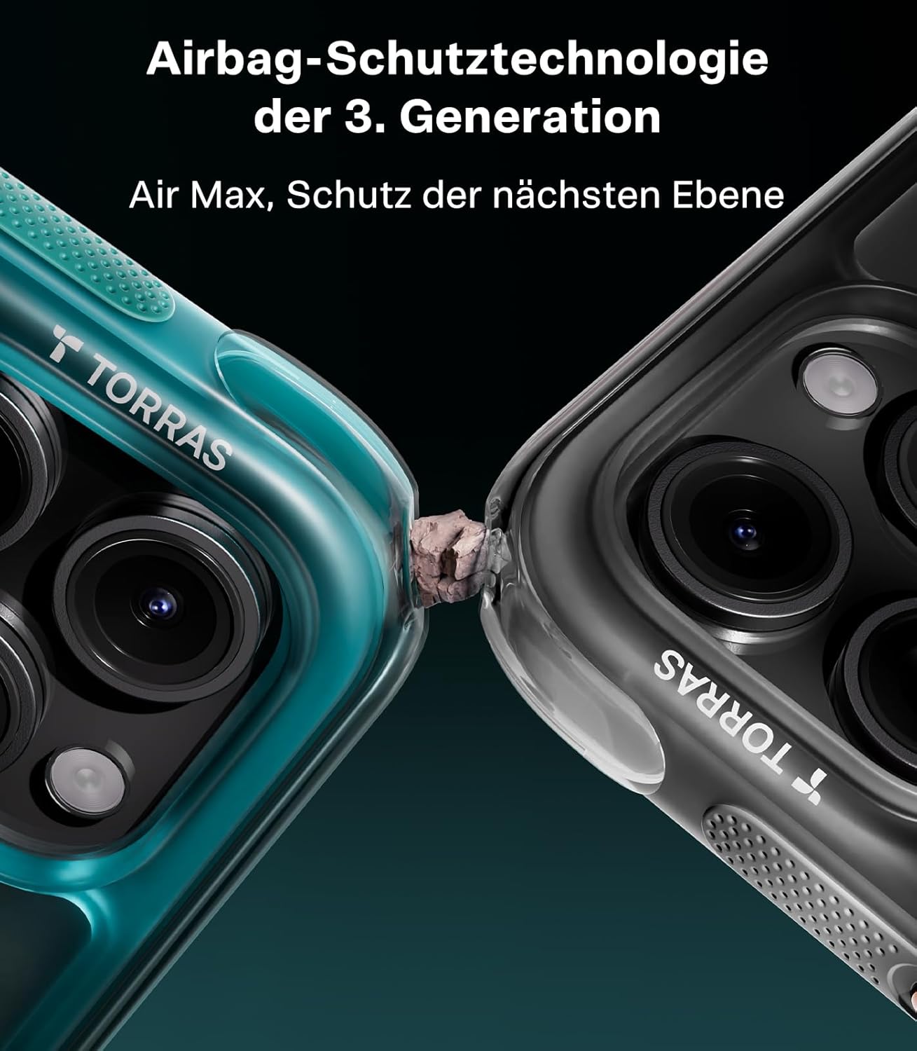 • Иновативна двуслойна структура на въздушните възглавници: С патентованата технология на въздушните възглавници на TORRAS – вдъхновена от омекотяването на съвременните маратонки. Специалната структура на въздушните възглавници абсорбира ударите и надеждно защитава – със 100% сила на отскок и устойчивост на удар над военния стандарт. Тествана при над 5002 падания – независимо дали е при колоездене, туризъм или ежедневие. Издържа дори на неочаквани падания.