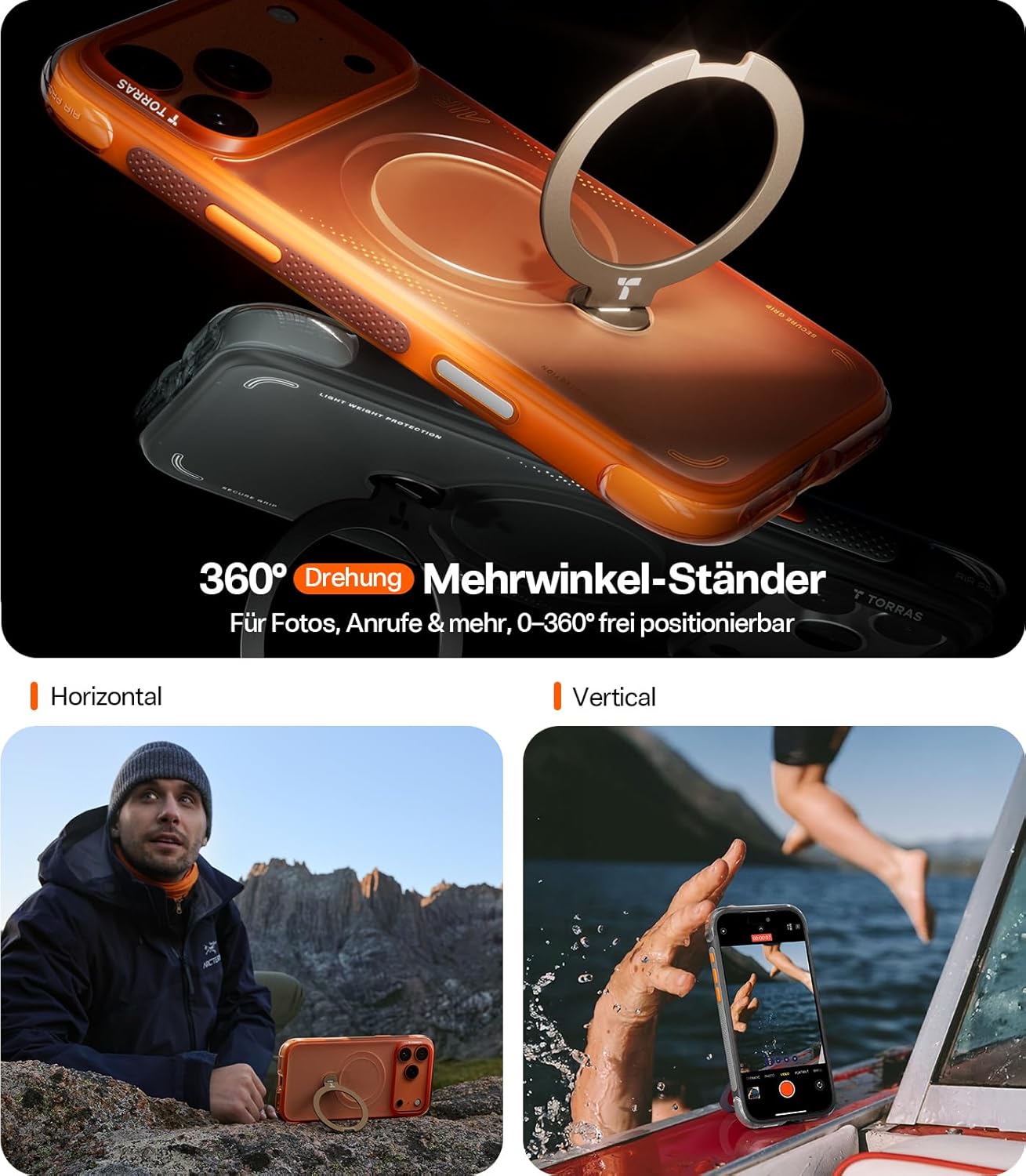 • [360-градусов пръстен за стойка: Стабилизиран за всеки желан ъгъл: Завъртането осигурява 360° завъртане и четириточково позициониране за най-стабилен ъгъл. С максимална гъвкавост можете да регулирате хоризонталния ъгъл от 15° до 160° и вертикалния от 30° до 92°. Независимо дали провеждате видеоконференции или дълги разговори, калъфът може лесно да се регулира до желания ъгъл за максимален комфорт в свободното време и по-голяма ефективност на работа.]