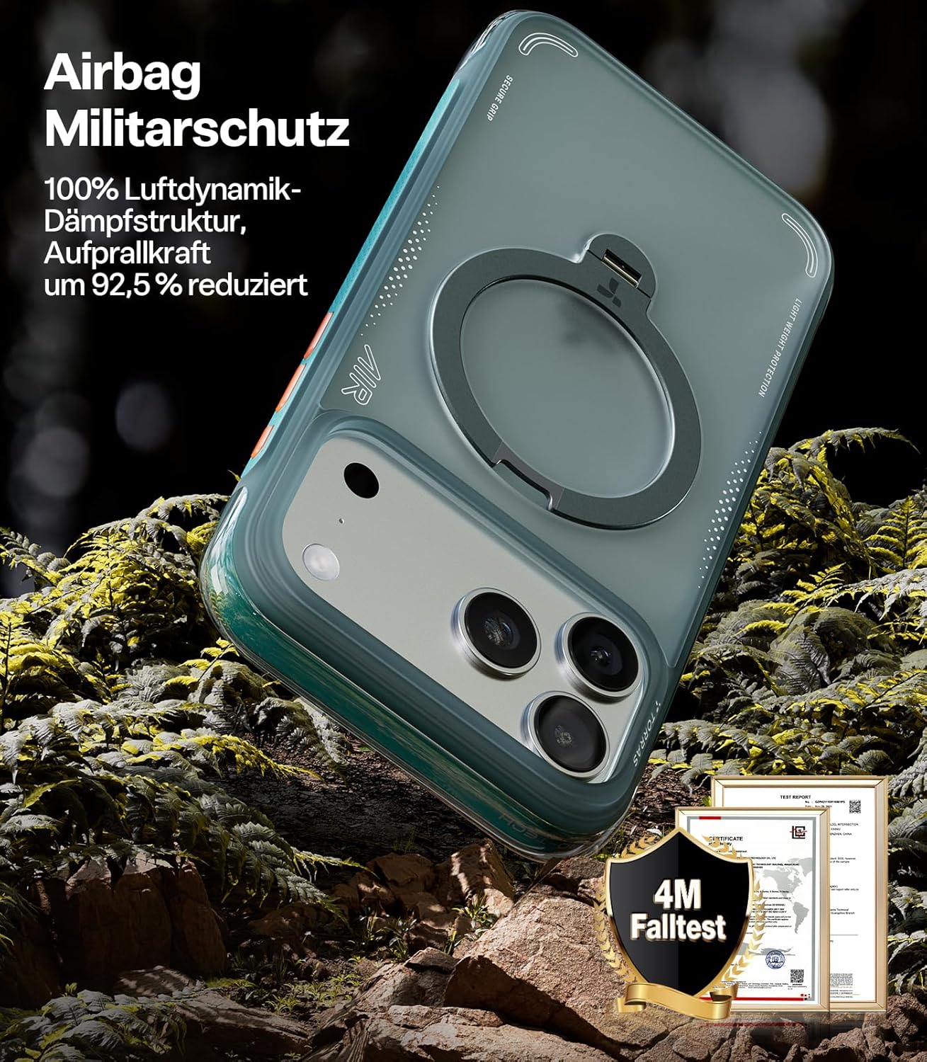 • Затворено: Силен магнитен пръстен, бързо зареждане: Невидим О-пръстен с вграден магнит, изработен от най-добрия материал N56 с технология Halbach, той осигурява силна магнитна сила от 18 N за превъзходна здравина и стабилност. Лесно свържете калъфа си към стойката за кола MagSafe за стабилна навигация. Насладете се на безпроблемна и сигурна връзка!