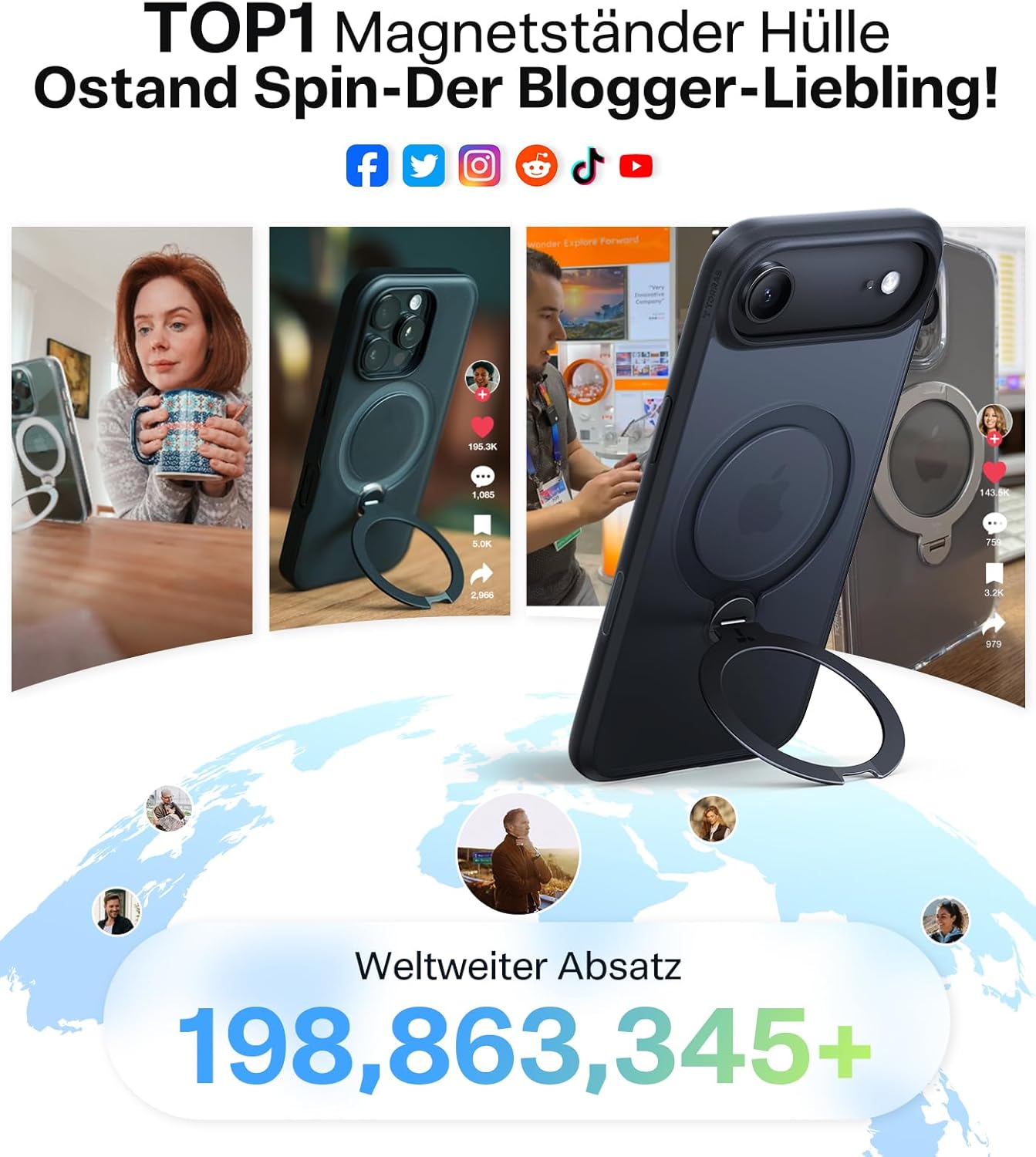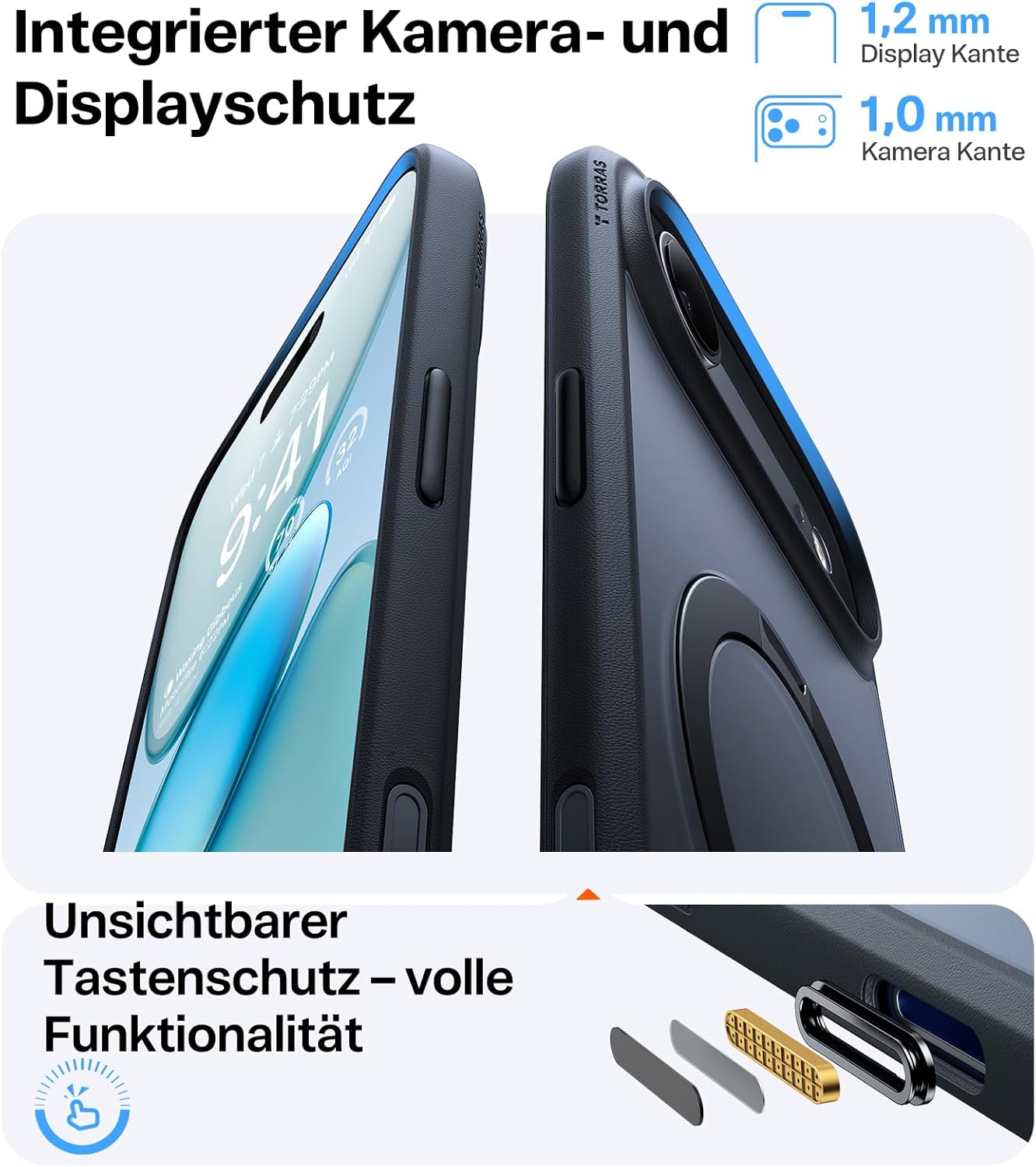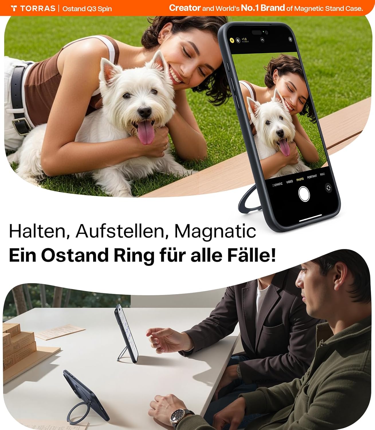 • Функционална, здрава и елегантна – всичко, което някога сте искали: TORRAS Ostand Q3 Spin е най-стабилната 360° стойка с нашата най-надеждна магнитна система за зареждане. Като лидер на пазара в интегрираните решения за магнитни стойки, ние непрекъснато насърчаваме иновациите. Нашият калъф за iPhone 17 Pro впечатлява с: Военно тествана защита от падане от височина 3,66 м; прецизна защита на бутоните на камерата; изключително силна магнитна функция; гъвкава, но напълно стабилна стойка.
