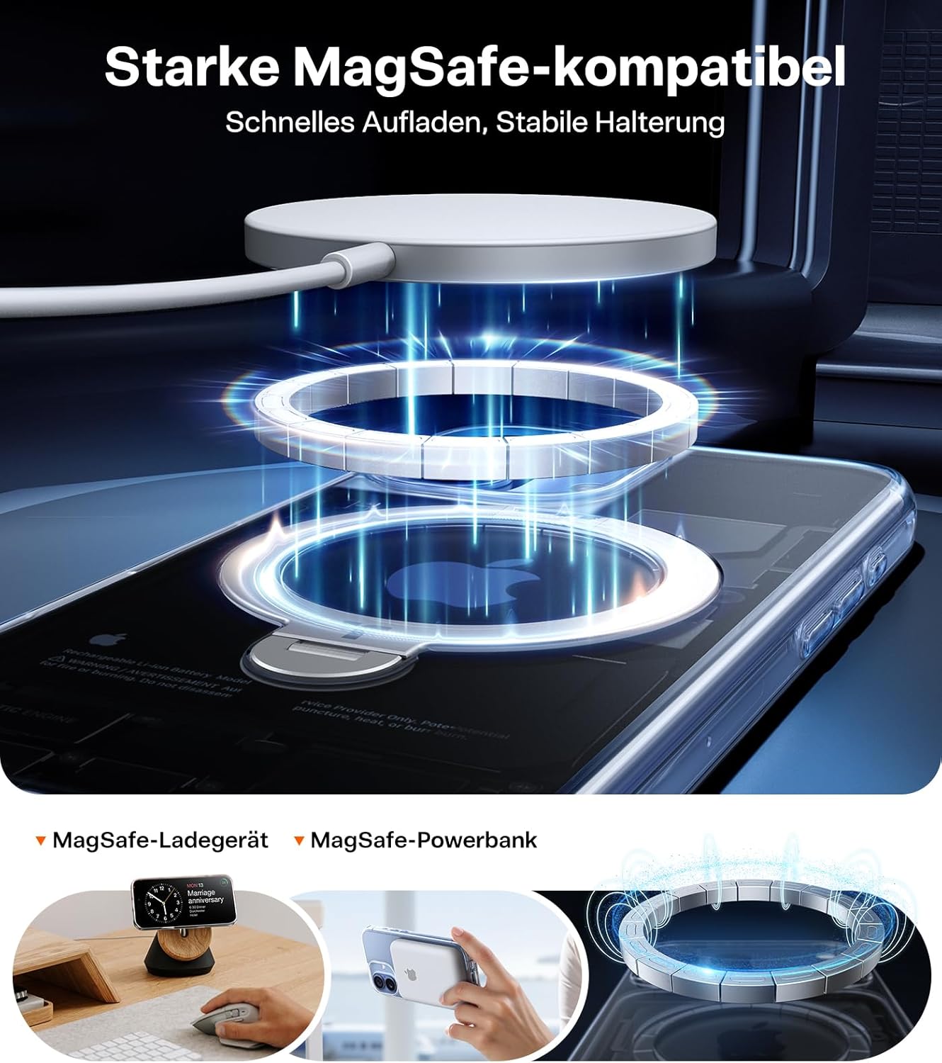 • Затворено: Силен магнитен пръстен, бързо зареждане: Невидим О-пръстен с вграден магнит, изработен от най-добрия материал N56 с технология Halbach, калъфът за iPhone 17 осигурява силна магнитна сила от 18 N за превъзходна здравина и стабилност. Лесно свържете калъфа си към стойката за кола MagSafe за стабилна навигация. Насладете се на безпроблемна и сигурна връзка!