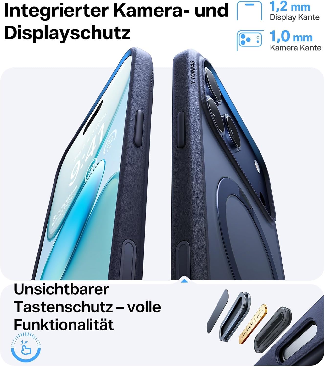 • Функционална, здрава и елегантна – всичко, което някога сте искали: TORRAS Ostand Q3 Spin е най-стабилната 360° стойка с нашата най-надеждна магнитна система за зареждане. Като лидер на пазара в интегрираните решения за магнитни стойки, ние непрекъснато насърчаваме иновациите. Нашият калъф за iPhone 17 Pro впечатлява с: Военно тествана защита от падане от височина 3,66 м; прецизна защита на бутоните на камерата; изключително силна магнитна функция; гъвкава, но напълно стабилна стойка.