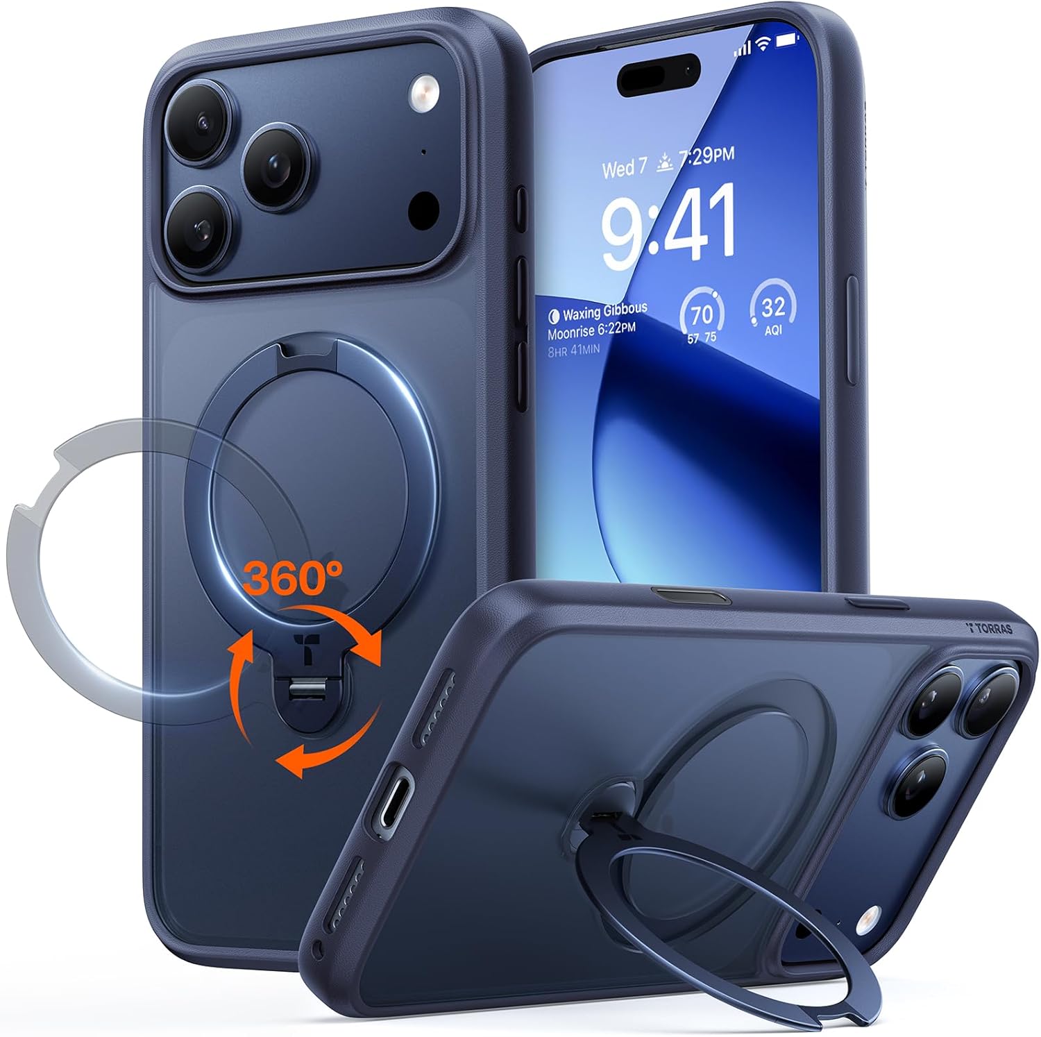 TORRAS Ostand Q3 Spin за iPhone 17 Pro Max, калъф (360° стабилна стойка за Magsafe), военен защитен калъф със защита на бутона на камерата, тънък, устойчив на надраскване, матов гръб за мобилен телефон за iPhone