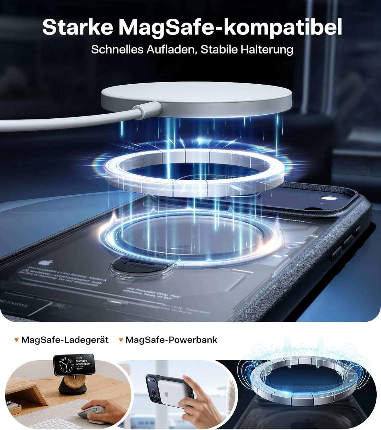 • Затворено: Силен магнитен пръстен, бързо зареждане: Невидим О-пръстен с вграден магнит, изработен от най-добрия материал N56 с технология Halbach, калъфът за iPhone 17 осигурява силна магнитна сила от 18 N за превъзходна здравина и стабилност. Лесно свържете калъфа си към стойката за кола MagSafe за стабилна навигация. Насладете се на безпроблемна и сигурна връзка!