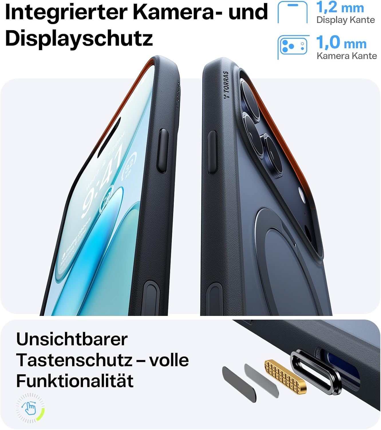 • Функционална, здрава и елегантна – всичко, което някога сте искали: TORRAS Ostand Q3 Spin е най-стабилната 360° стойка с нашата най-надеждна магнитна система за зареждане. Като лидер на пазара в интегрираните решения за магнитни стойки, ние непрекъснато насърчаваме иновациите. Нашият калъф за iPhone 17 Pro впечатлява с: Военно тествана защита от падане от височина 3,66 м; прецизна защита на бутоните на камерата; изключително силна магнитна функция; гъвкава, но напълно стабилна стойка.