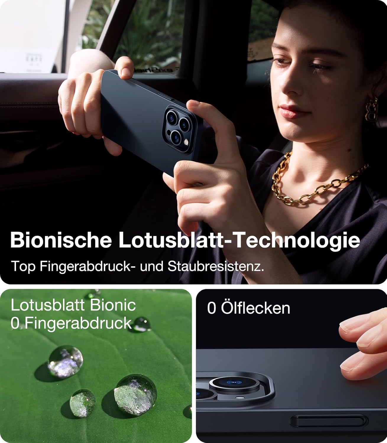 • Удобно докосване, най-добър захват: Телефоните ни почти постоянно се държат в ръка, така че удобният захват е много важен. Този калъф за iPhone 16 има матово покритие и извит 3D ръб. Кадифеният, копринен захват прави всяко докосване още по-удобно. Повърхността също така има супер-нано покритие, което ефективно отблъсква пръстови отпечатъци и замърсявания.