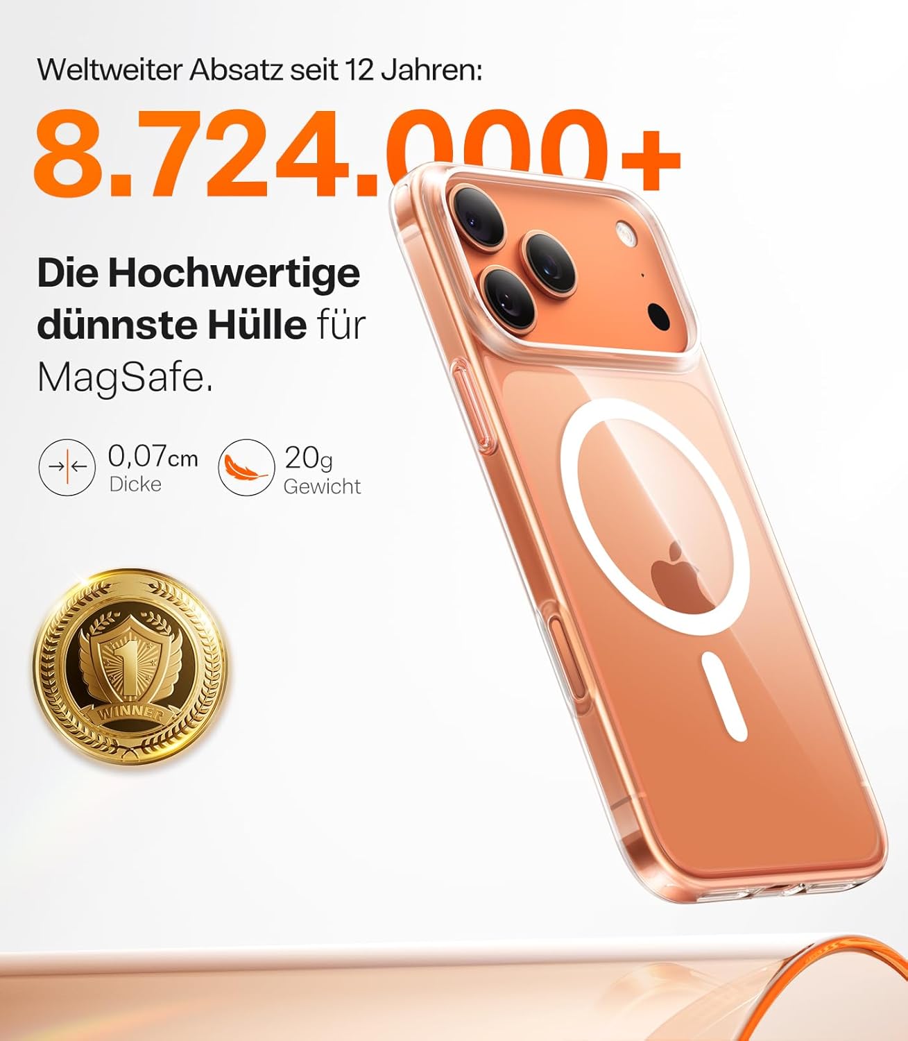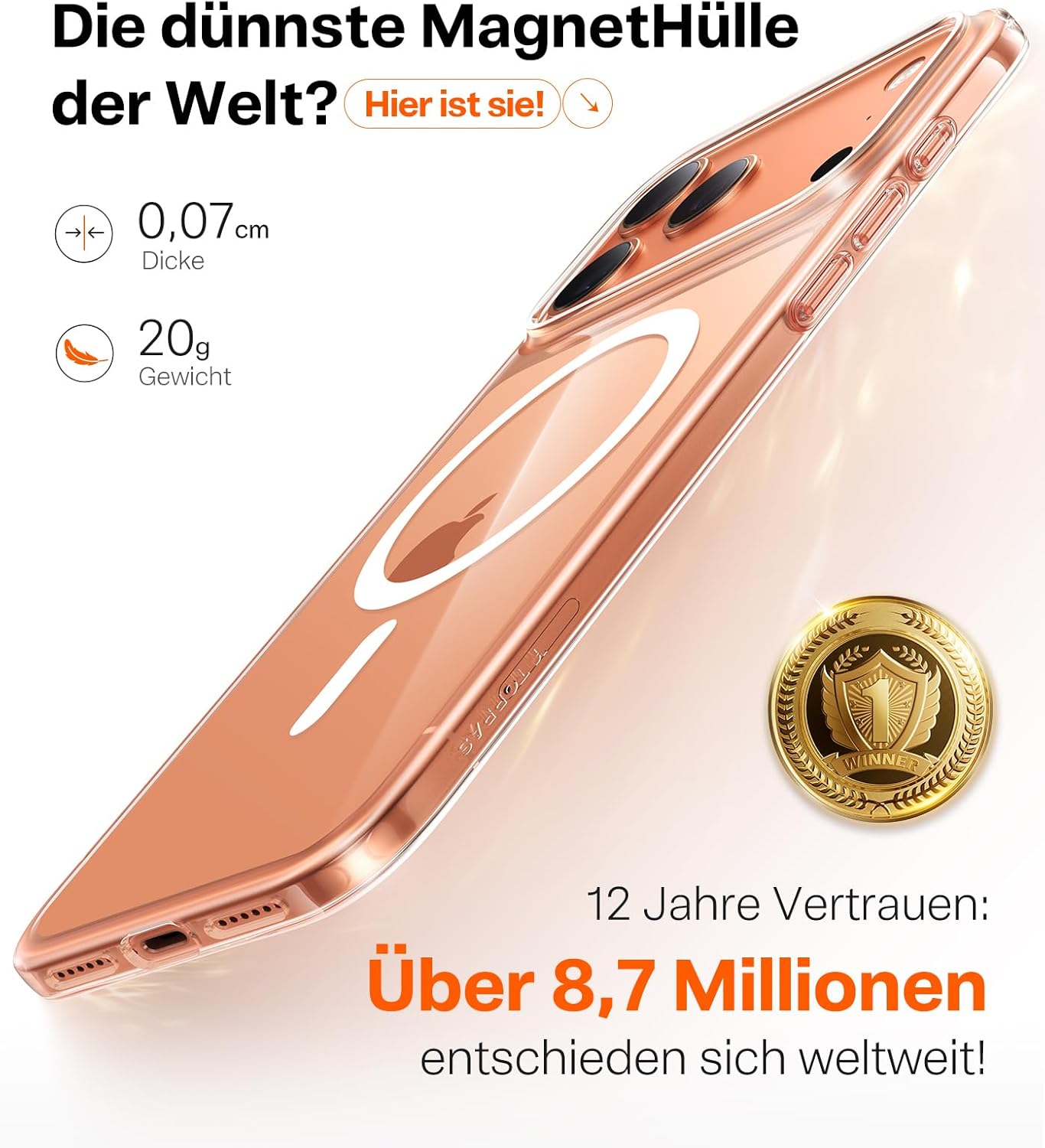 • Най-тънкият калъф в индустрията, перфектна комбинация от класика и иновация: В продължение на много години серията TORRAS Ultra-Thin се радва на голяма популярност с над 8,7 милиона клиенти и процент на повторно закупуване от 93,2%. Ултратънкият калъф за iPhone 17 Pro все още се отличава с популярния тънък дизайн и е съвместим с функцията MagSafe. Това е ултратънък калъф с магнитна функционалност, който предлага максимален комфорт.