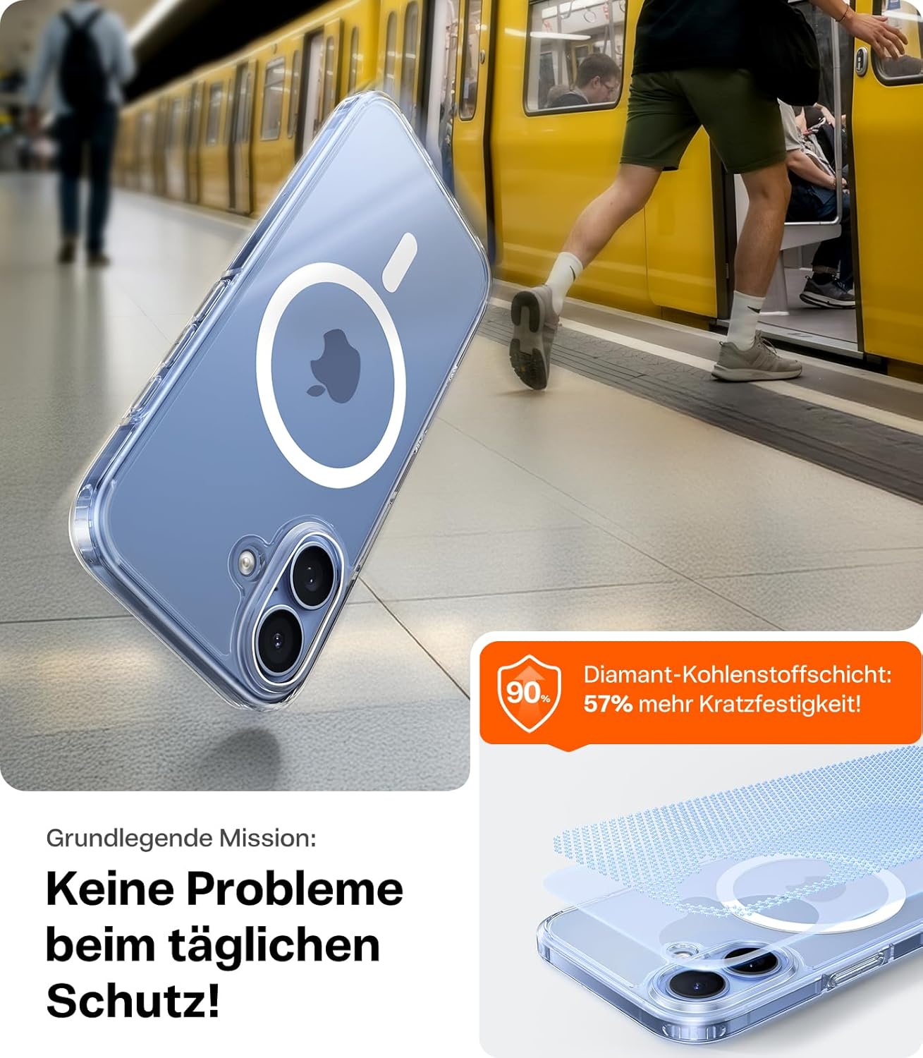 • Тънък, но предлагащ силна защита: Този калъф за iPhone 17 Pro е изработен от високоякостен материал Bayer, който е 1,5 пъти по-здрав от обикновения поликарбонат (PC). Независимо дали е в ежедневието или по време на неочаквани инциденти, този калъф надеждно защитава телефона ви. Защитата на камерата с височина 1,5 мм и защитата на ръбовете с височина 1,2 мм предпазват телефона ви от драскотини и удари.