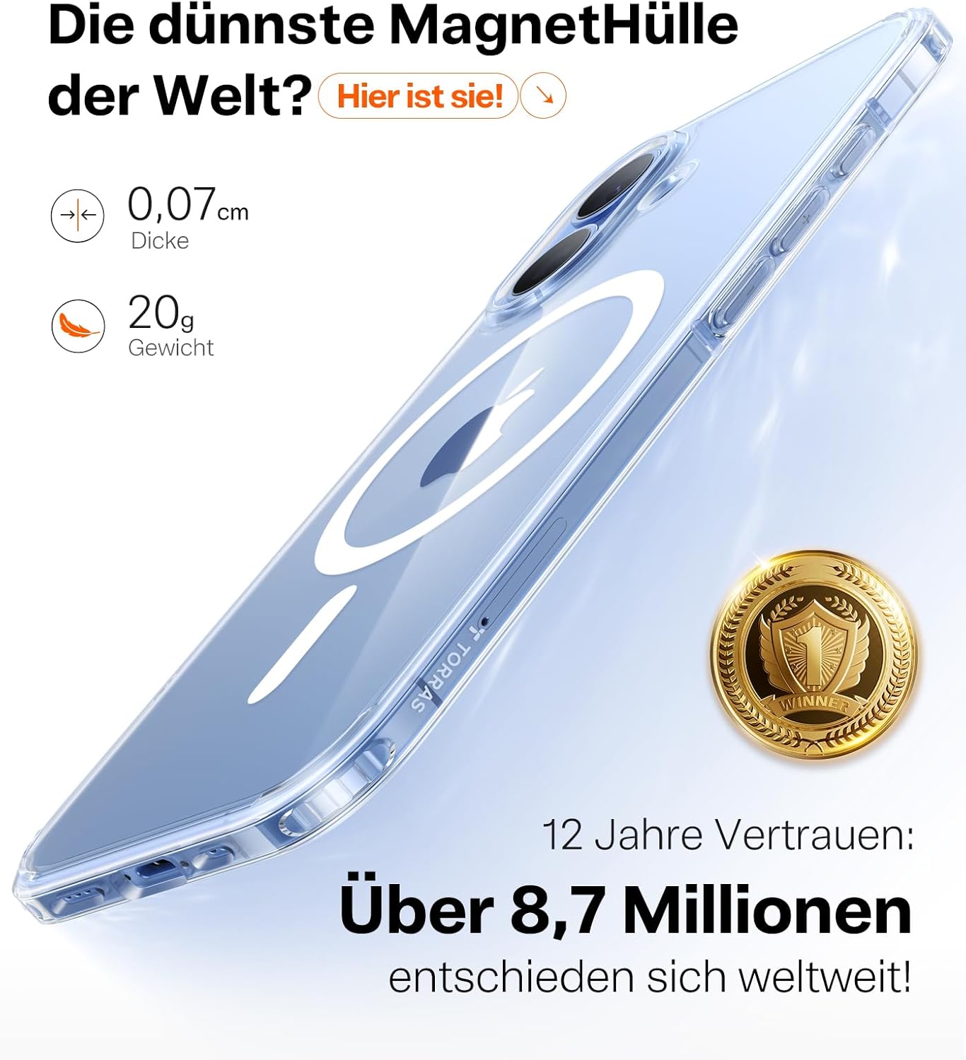 • Най-тънкият калъф в индустрията, перфектна комбинация от класика и иновация: В продължение на много години серията TORRAS Ultra-Thin се радва на голяма популярност с над 8,7 милиона клиенти и процент на повторно закупуване от 93,2%. Ултратънкият калъф за iPhone 17 Pro все още се отличава с популярния тънък дизайн и е съвместим с функцията MagSafe. Това е ултратънък калъф с магнитна функционалност, който предлага максимален комфорт.