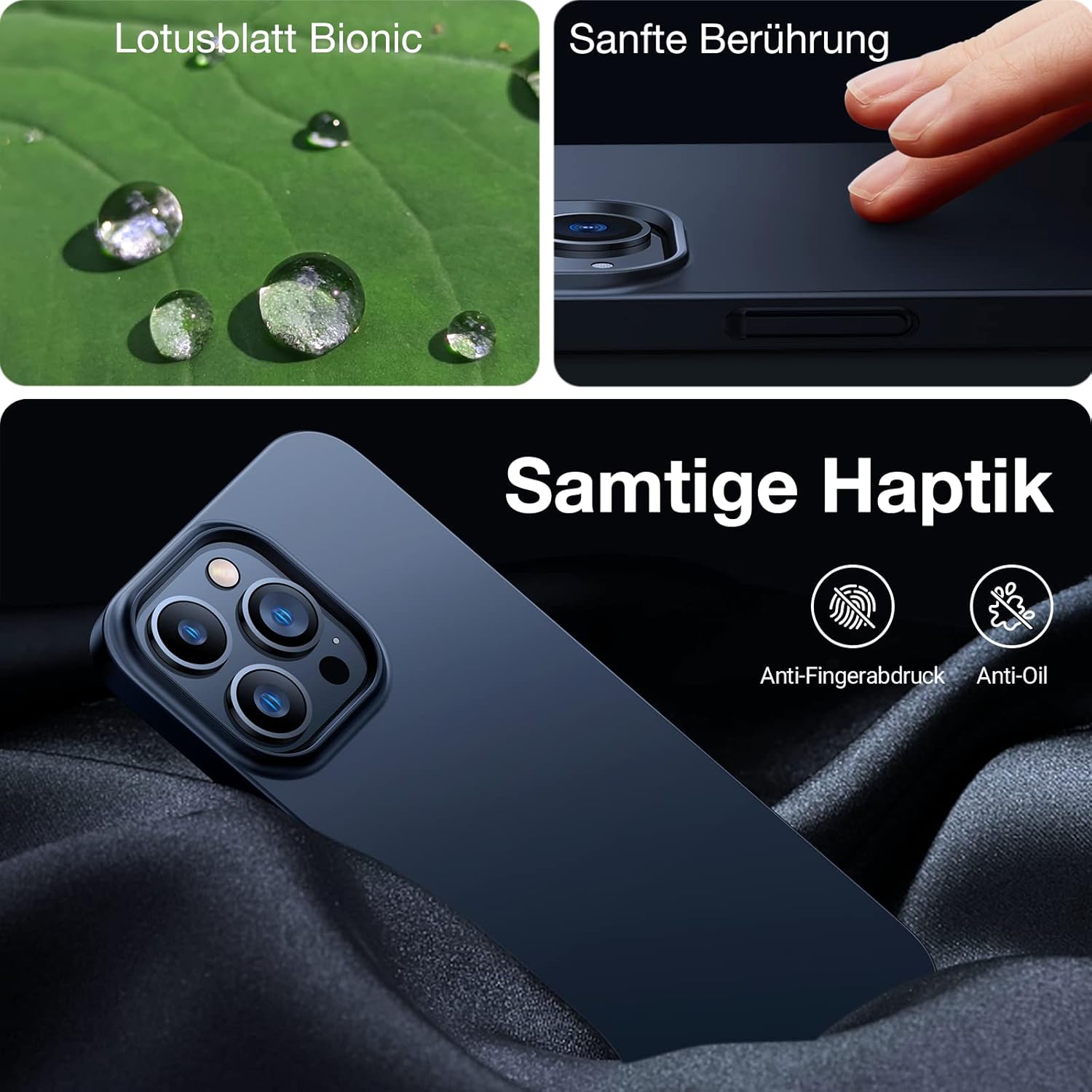 TORRAS Ултратънък калъф за мобилен телефон за iPhone 14 Pro Max, с 2 x 9H защитни стъклени листа, кадифено покритие, никога не се праши или лепи, нечуплив защитен калъф, елегантен вид, тънък, черен