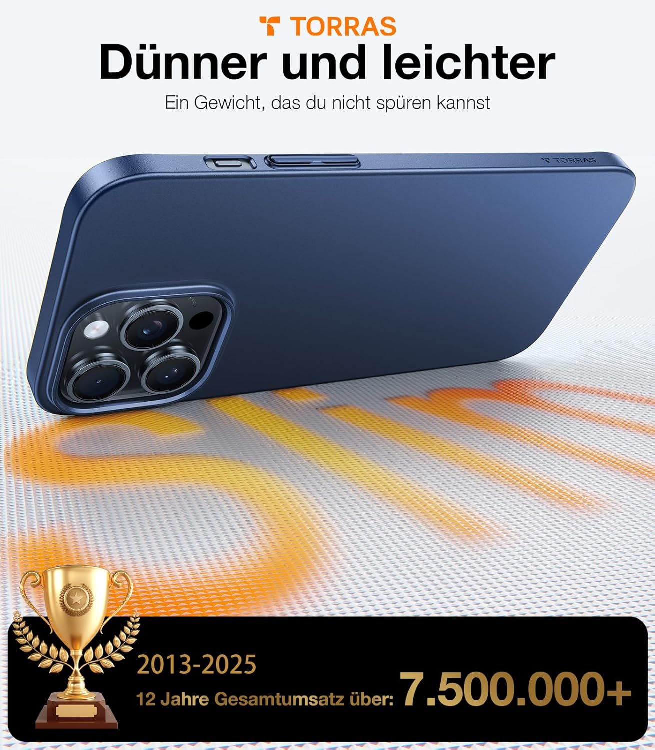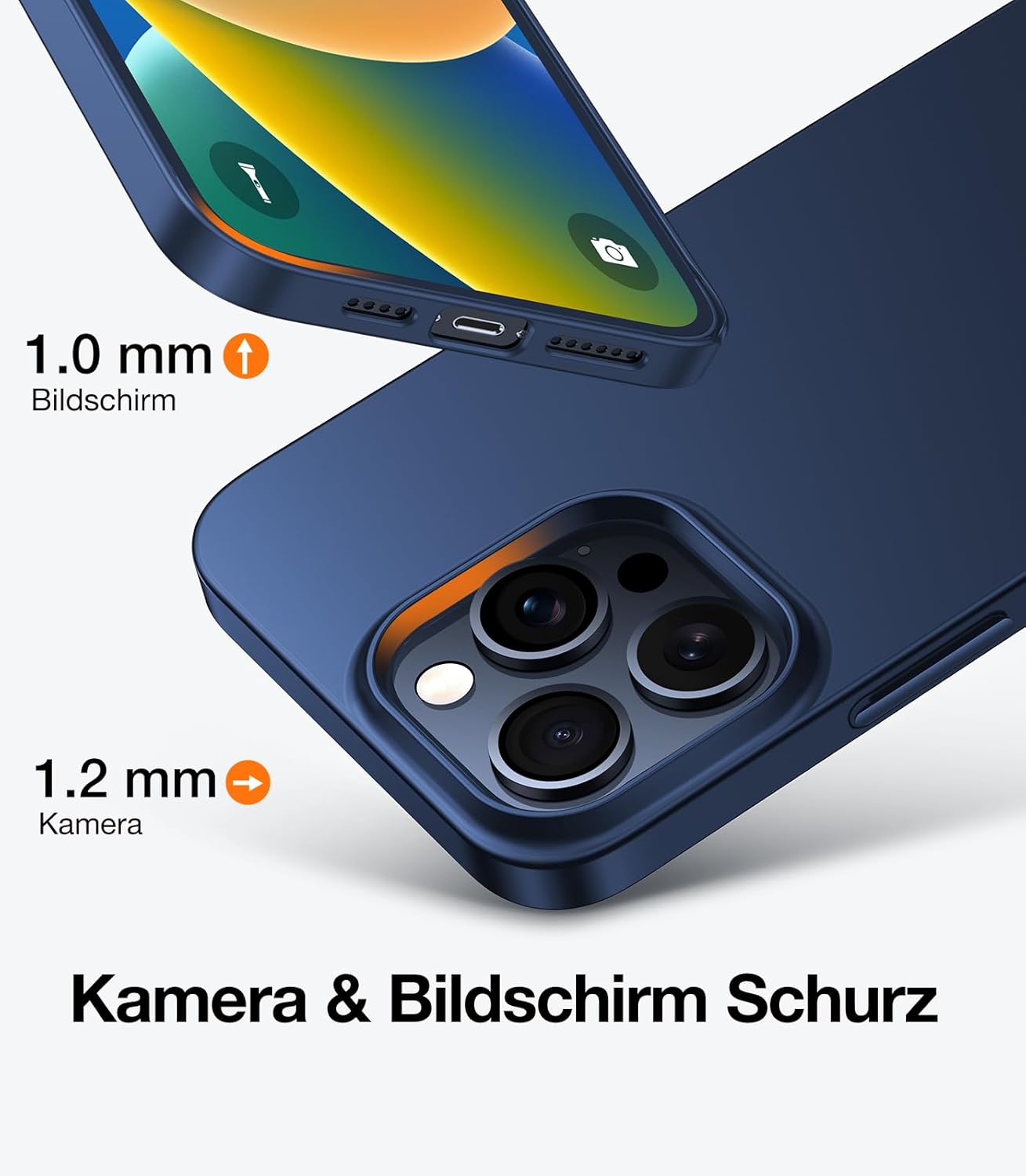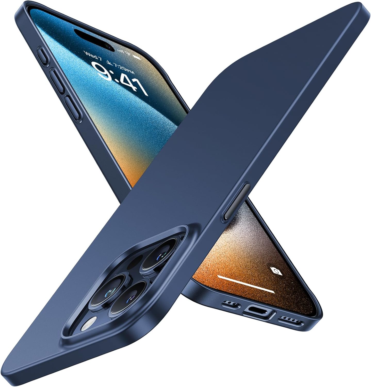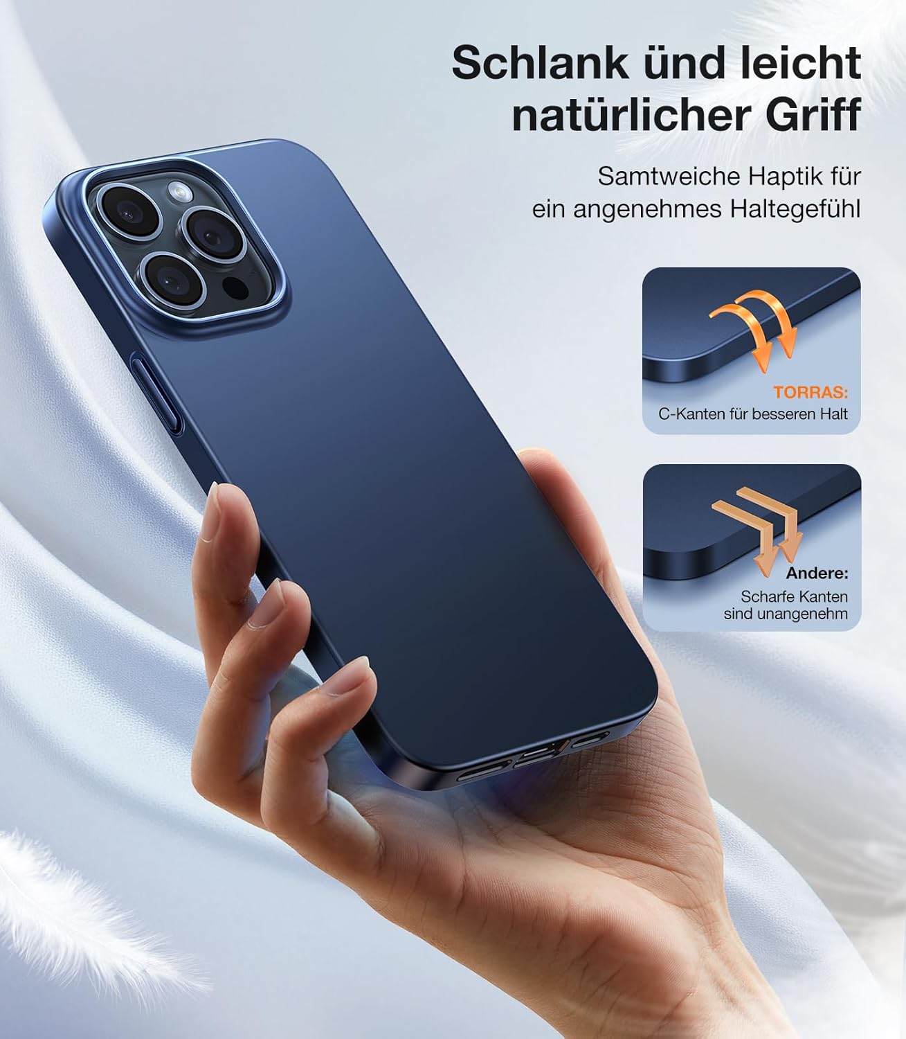 TORRAS Ултратънък калъф за мобилен телефон за iPhone 15 Pro, кадифено покритие, никога не се замърсява или не лепи, нечуплив защитен калъф, елегантен вид, тънък, син