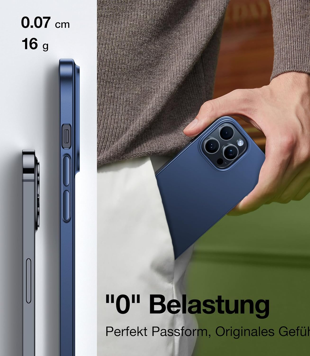 • Ултра тънък, без напрежение: Този калъф за iPhone 16 използва ексклузивен процес на лазерно рязане, за да постигне тънкост от 0,7 мм. Той е толкова тънък и лек, че максимално запазва оригиналната изящност и деликатност на iPhone. Лек захват, без напрежение: Защитният калъф за iPhone 16 е изработен от безопасен и естествен материал със сертификат RoHS, който защитава не само вашия iPhone, но и вашето здраве.