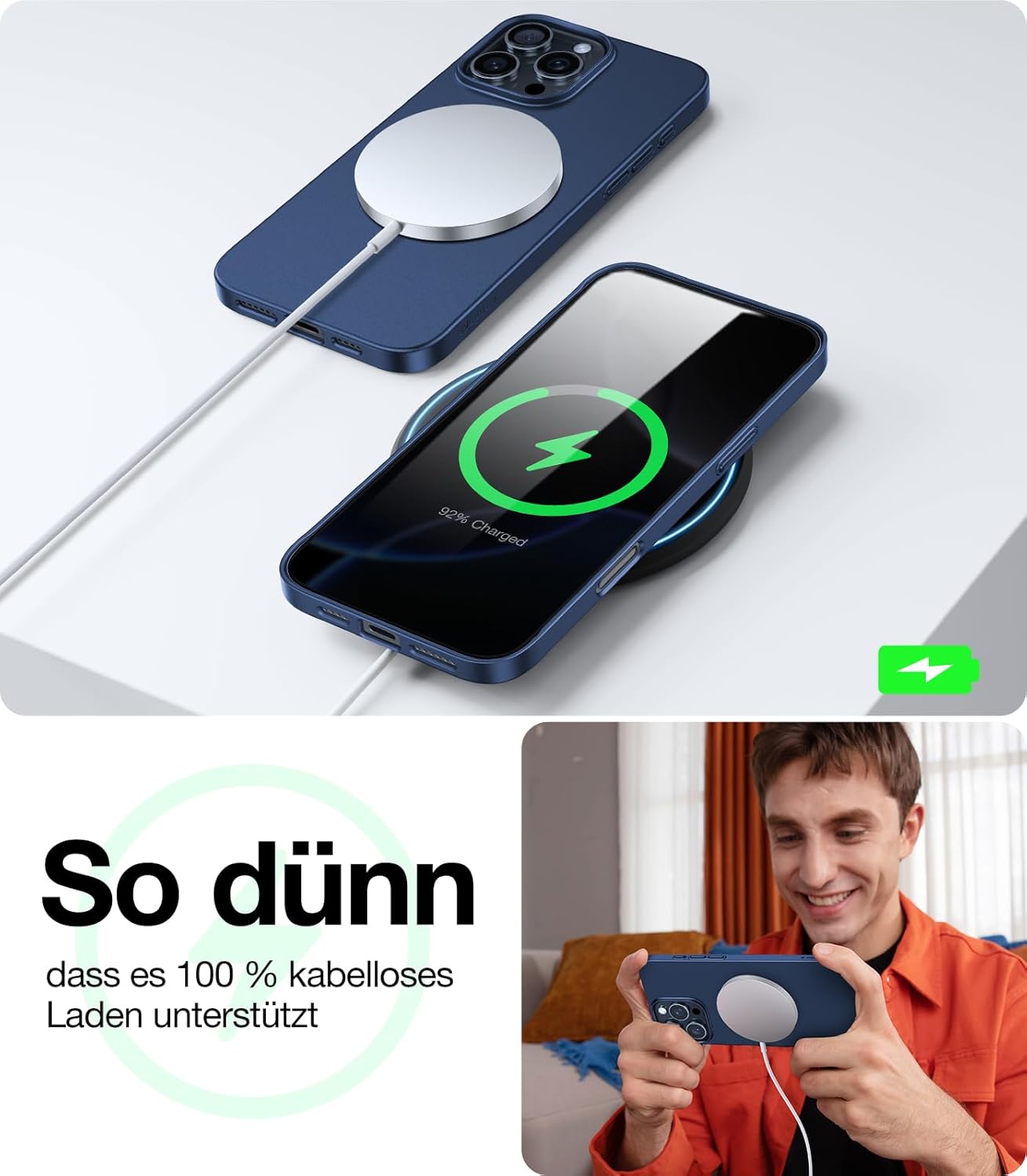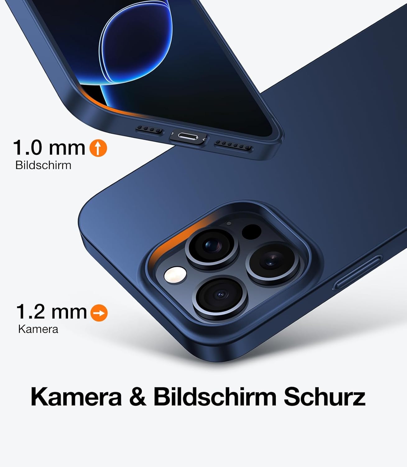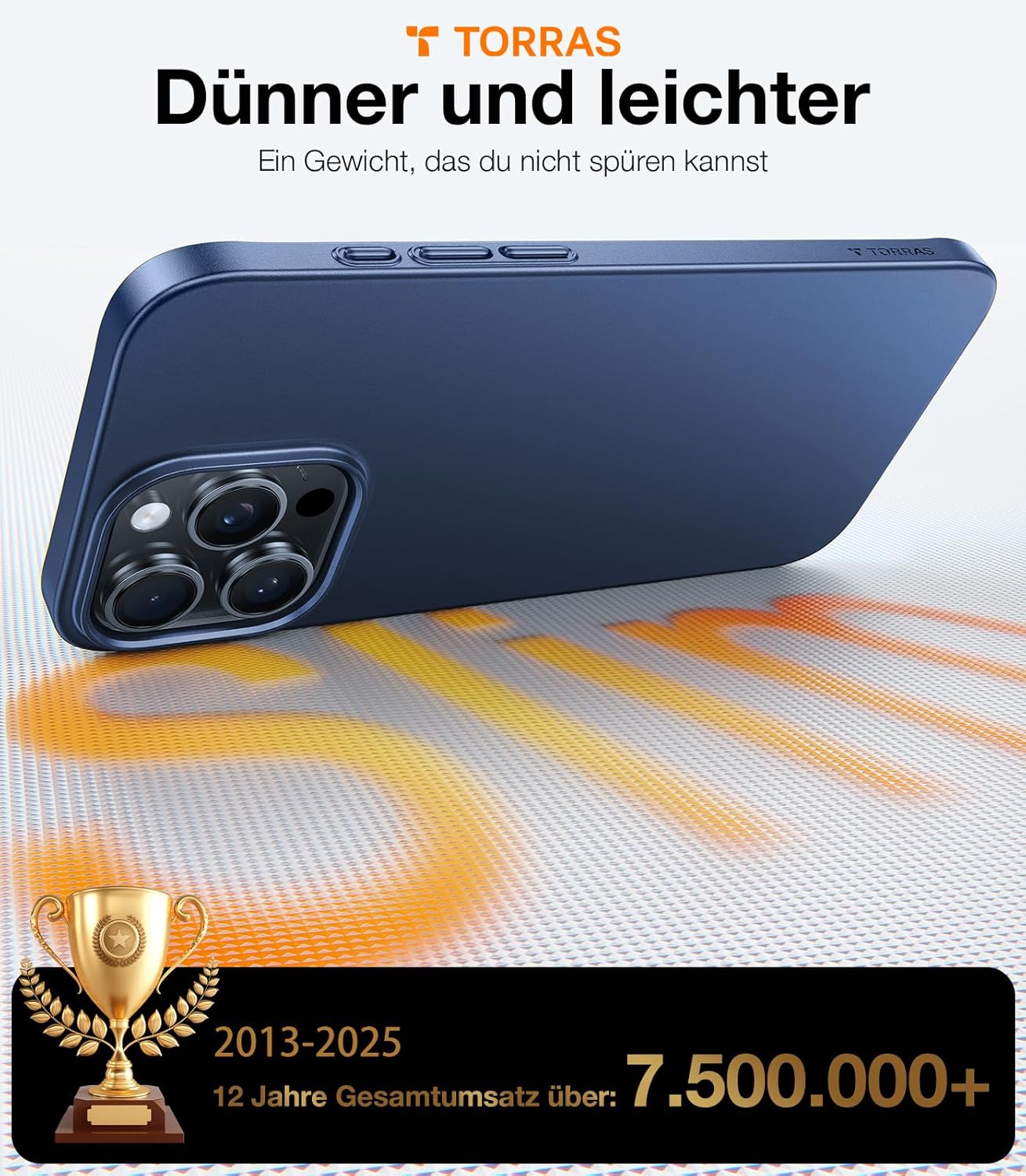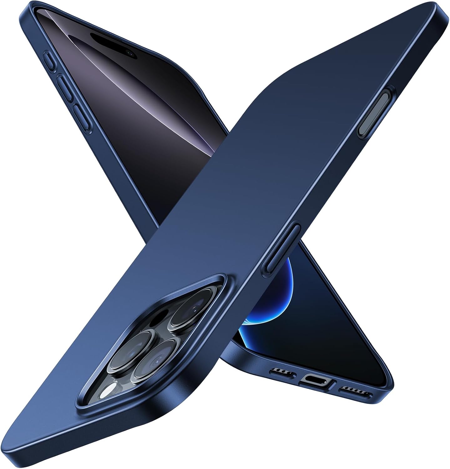 TORRAS Ултратънък калъф за мобилен телефон за iPhone 16 Pro, като оригинала, цялостна защита, отлично кадифено захващане, защитен, тънък, син