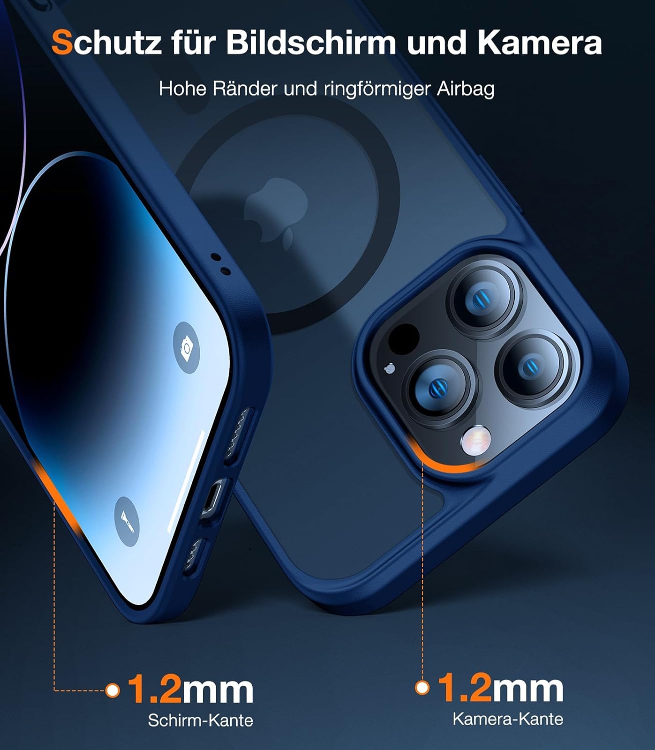 • Максимална защита за iPhone 17 Pro: Този калъф за iPhone 17 Pro комбинира взривоустойчиви композитни материали от термопластичен полиуретан (TPU) + термопластичен еластомер (TPE) с патентованата технология MilShock в четирите ъгъла. Лабораторно тестван, той е устойчив на падания от височина 4 м и е издържал лесно на над 5000 теста за падане. Заедно с повдигнатата 2,5 мм защита на камерата и 1,8 мм високия ръб на дисплея, той образува 360° защитна система, която надеждно защитава вашия iPhone 17 Pro от ежедневни падания и екстремни натоварвания.
