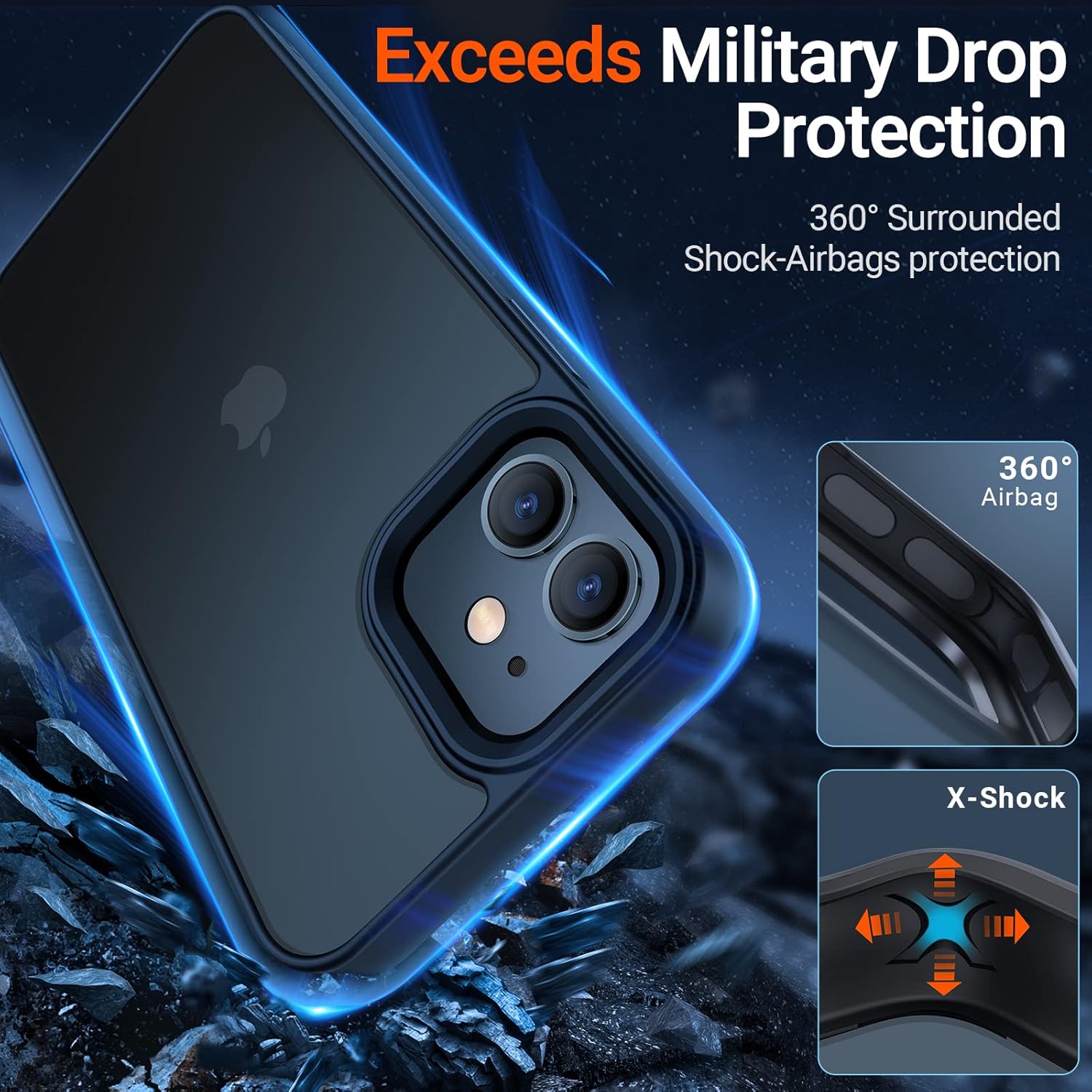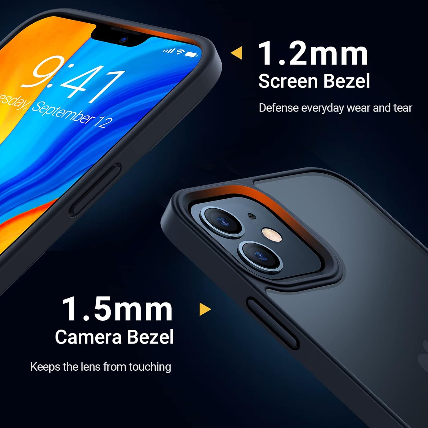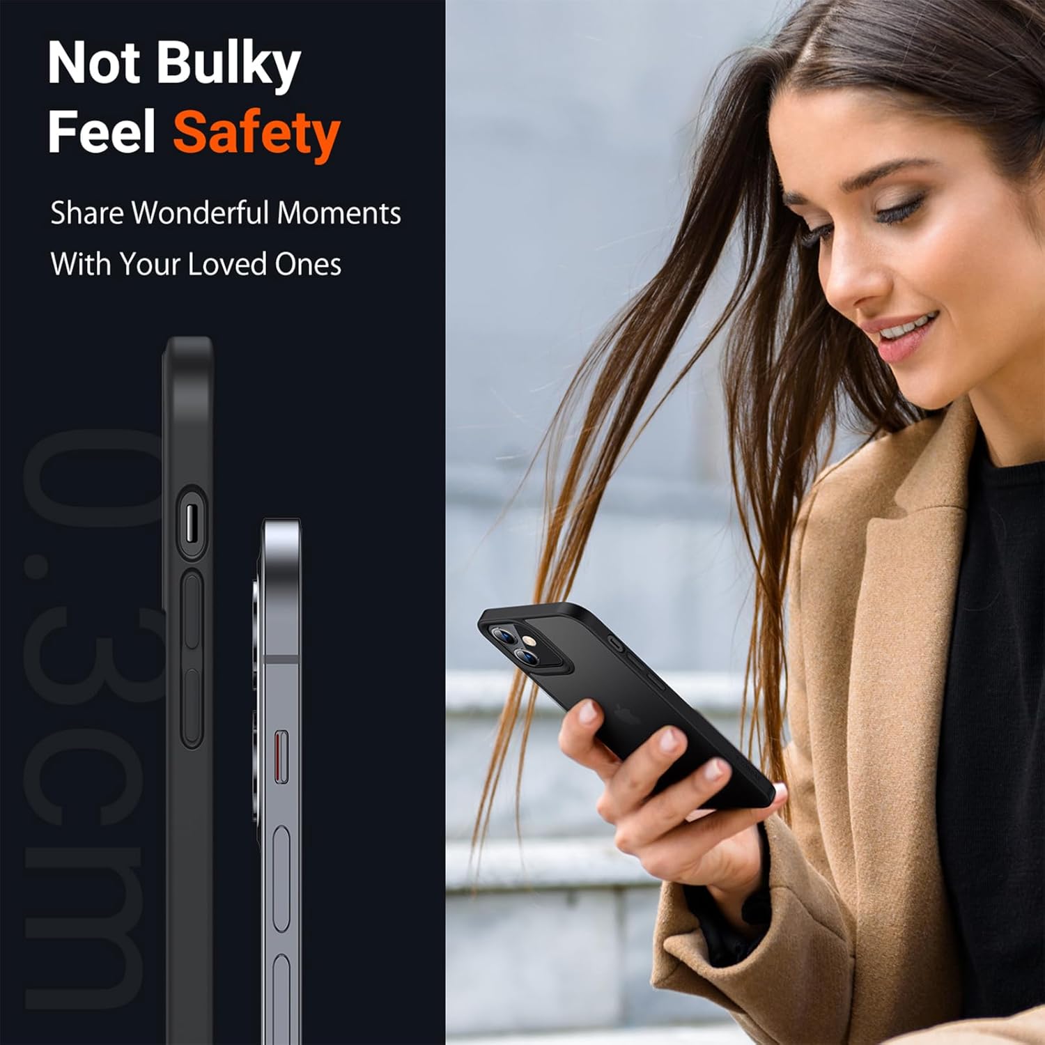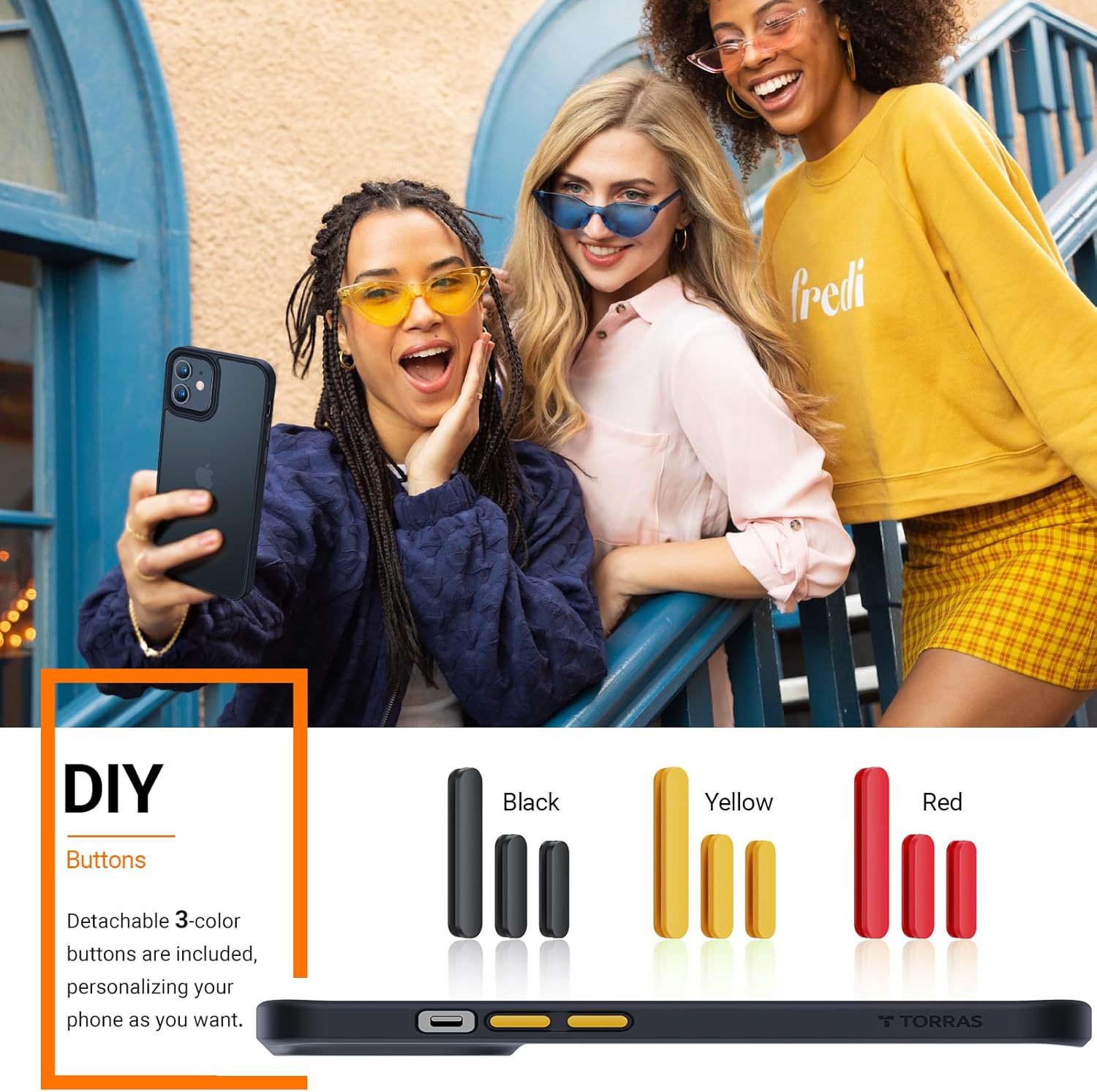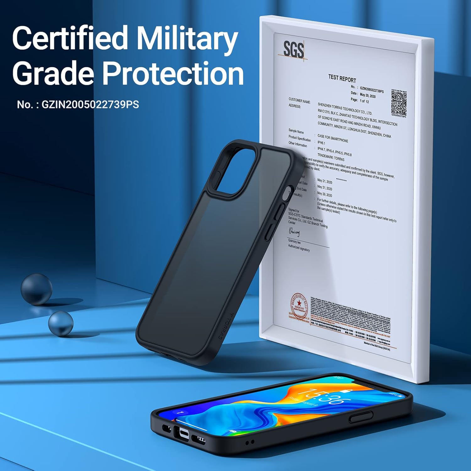 TORRAS Upgrade калъф за iPhone 12/12 Pro, най-добрата военна защита, кадифено удобно захващане, с подвижни копчета, тънък, удароустойчив калъф за мобилен телефон, черен