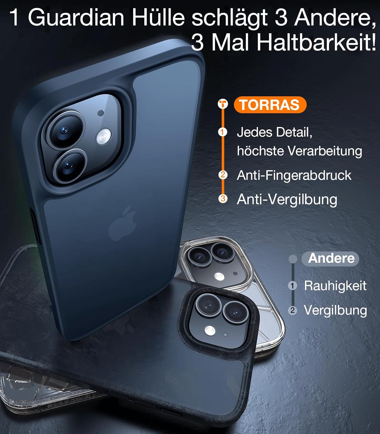 • Фокус върху защитата, предефинирана класика: TORRAS е специализирана във висококачествени защитни калъфи. Серията Guardian е един от най-продаваните калъфи в света благодарение на изключителната си устойчивост на удар. Проектиран за екстремни условия, той предлага безкомпромисна защита, когато е необходимо. Калъфът за iPhone 17 Pro е нашият най-здрав модел досега и е символ на максимална всестранна защита.