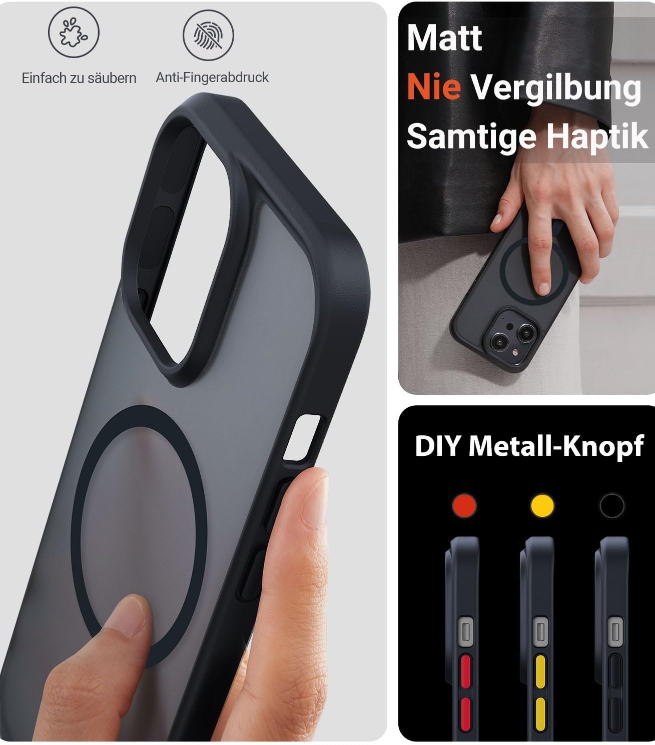 • Перфектни детайли за отлично качество: Калъфът за iPhone 17 Pro впечатлява с 45% пропускливост на светлина за елегантен дизайн и иновативна 3D лазерна текстура с нано покритие за първокласен комфорт при захващане. Подобрените метални бутони за изключване на звука реагират по-бързо, а модулният дизайн позволява персонализирани цветови комбинации. А прецизните изрези отразяват претенцията на TORRAS за съвършенство – перфектната комбинация от стил и функционалност.