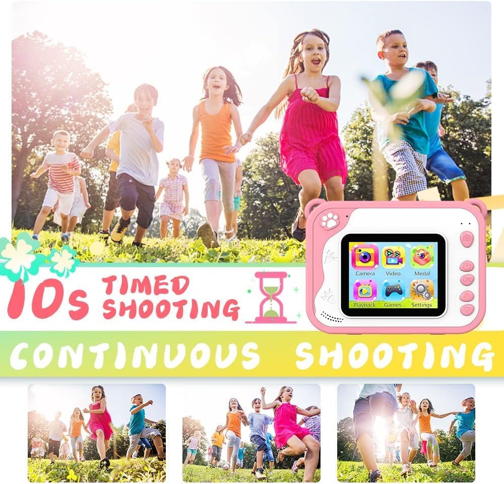 Die mini kamera kinder kann die Aufnahmezeit auf 3/5/10 Sekunden einstellen. Halten Sie jeden Moment fest, wenn Kinder spielen oder sich bewegen. Durch Serienaufnahmen können Kinder jeden wunderbaren Moment festhalten.