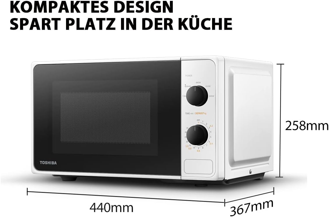 Toshiba MM2-MM20PF(WH) Напълно функционална микровълнова фурна с 5 нива на мощност, лесно размразяване, 20 л, 800 W, бяла