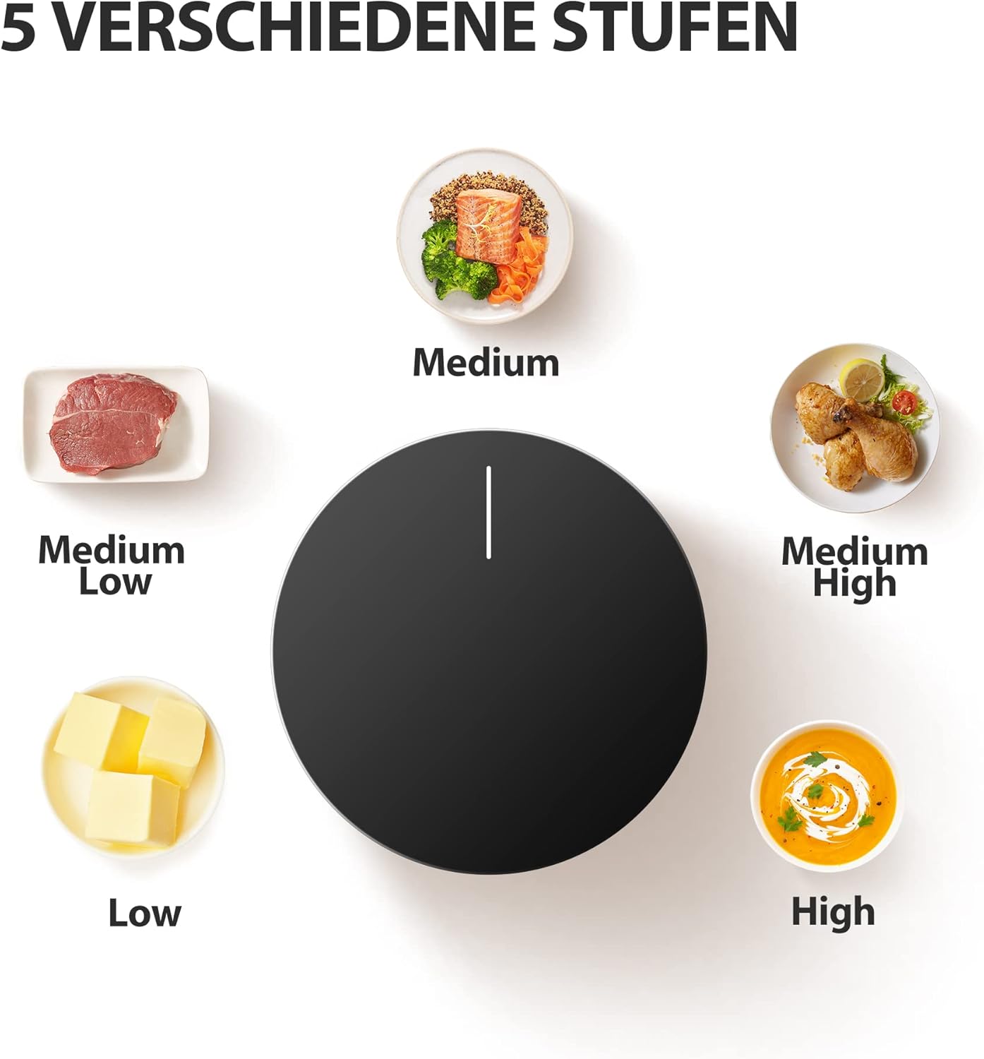 • 5 нива на мощност: за по-голяма гъвкавост в кухнята - от поддържане на храната топла до готвене на течности.