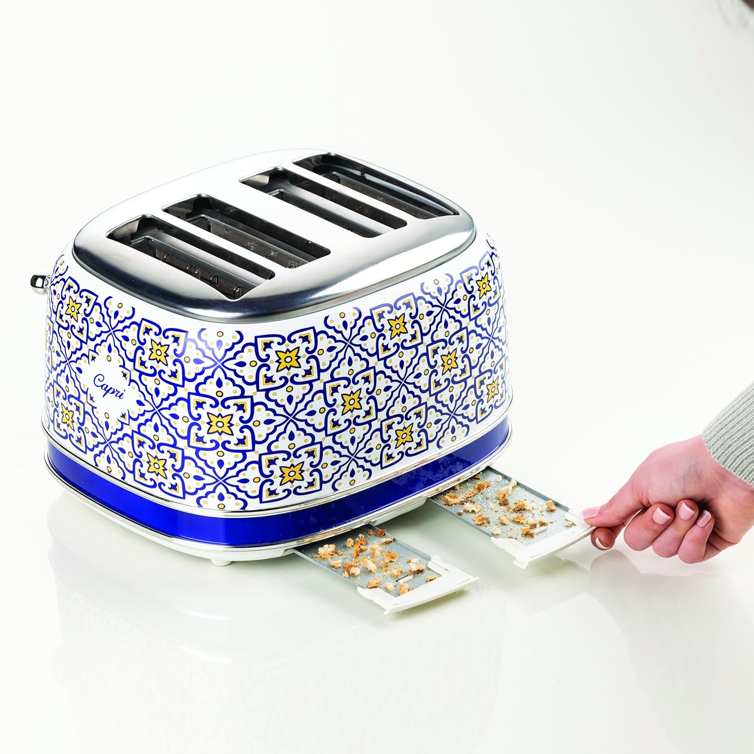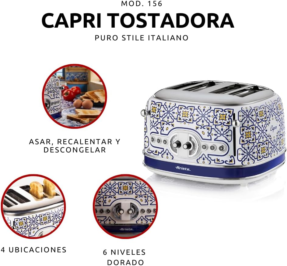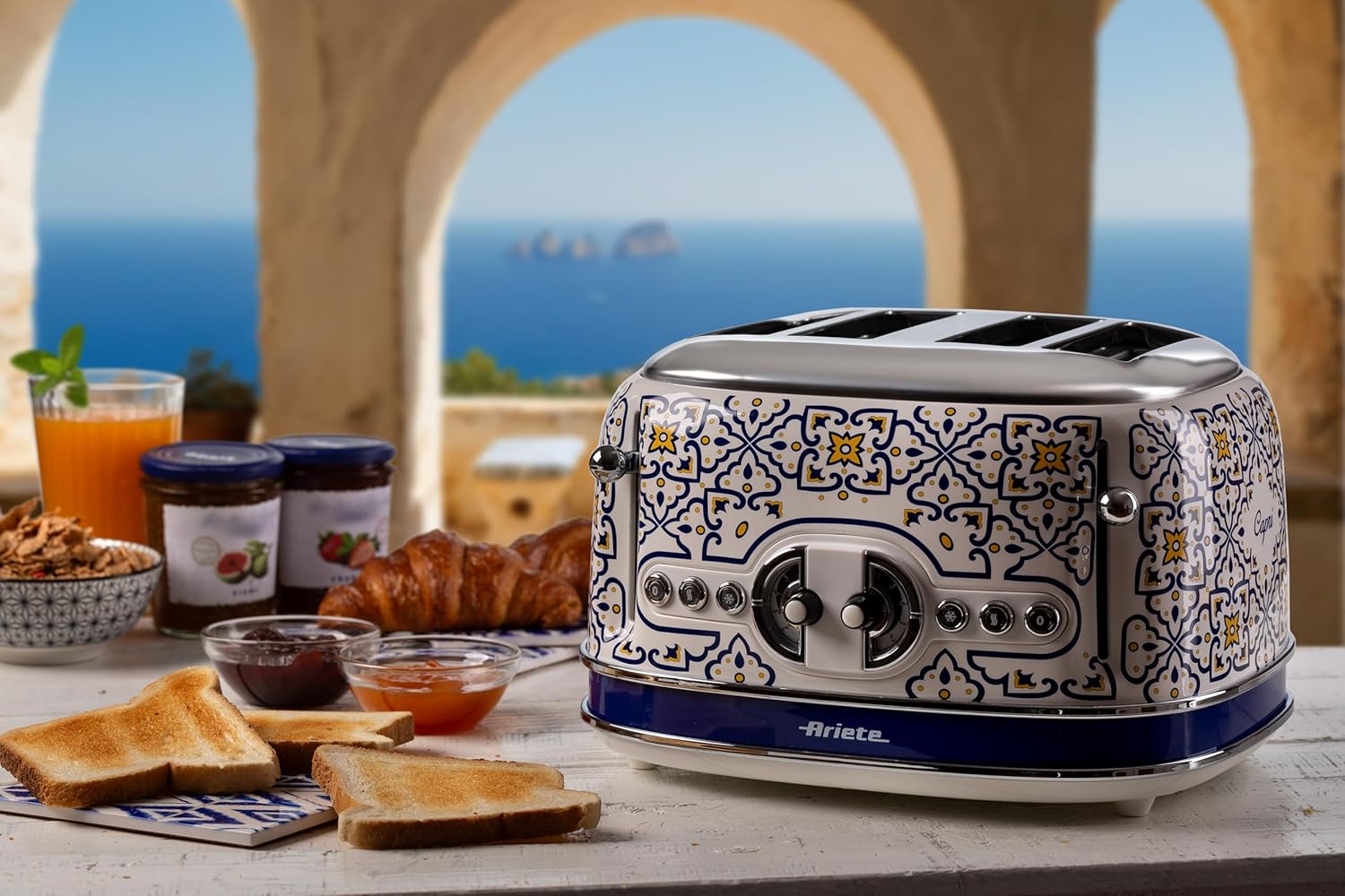 Тостерът Vintage Ariete има 4 отделения за препичане на четири филийки хляб за вашите изключително големи закуски и леки закуски! Благодарение на подвижната тавичка за трохи, можете лесно и безопасно да отстраните остатъците от тостера.