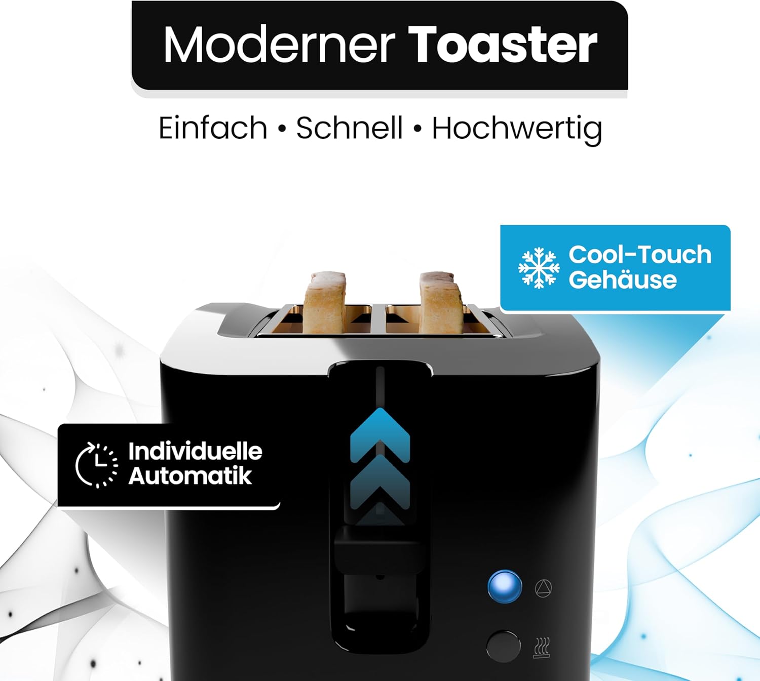 Тостер Bomann® с 2 отделения за препечен хляб, тостер с приставка за хлебчета, тостер за 2 филийки с функция за повдигане, тостер с функция за размразяване и затопляне, за хлебчета и препечен хляб, TA 6065 CB черен