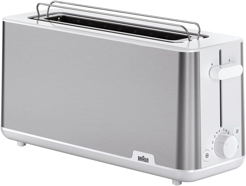 Отворът за препичане с дължина 25 см побира различни видове хляб, гарантирайки, че дори най-големите филийки ще бъдат препечени перфектно. Препечете любимия си хляб точно както го обичате. Тостерът разполага с осем нива на препичане, както и с функции за размразяване и претопляне. Включва също вграден подгревател за хлебчета и тава за трохи.