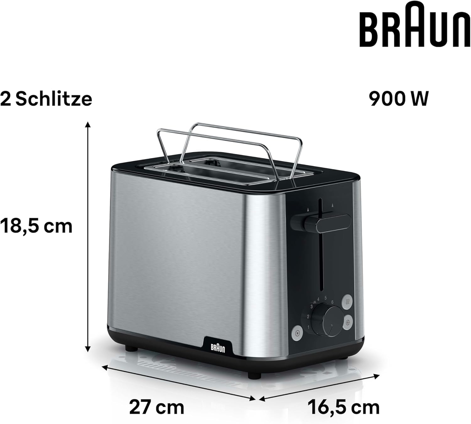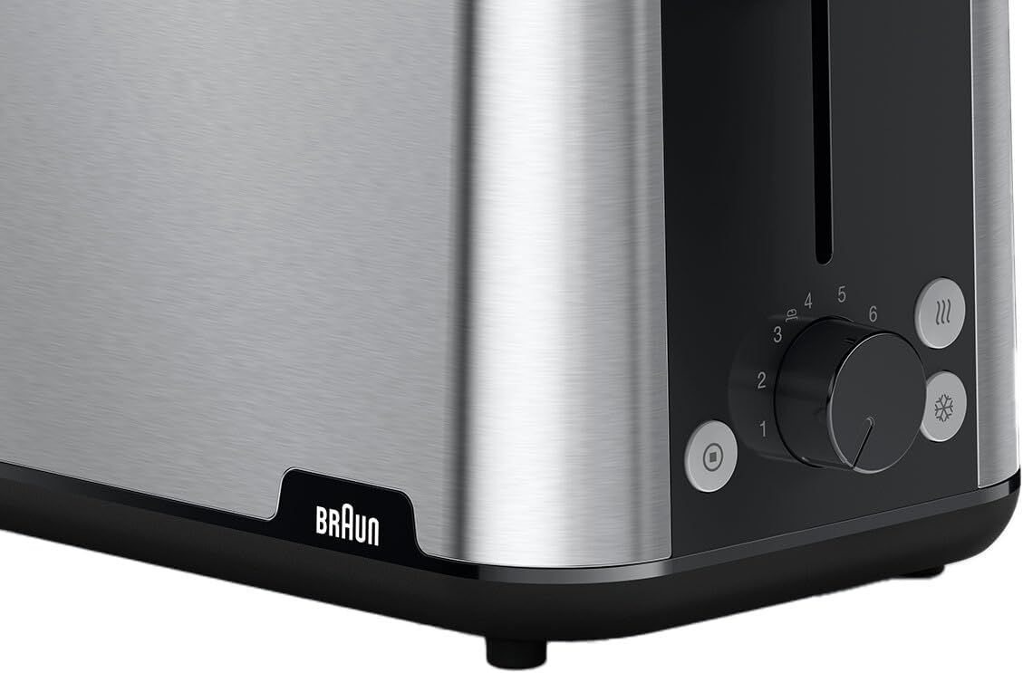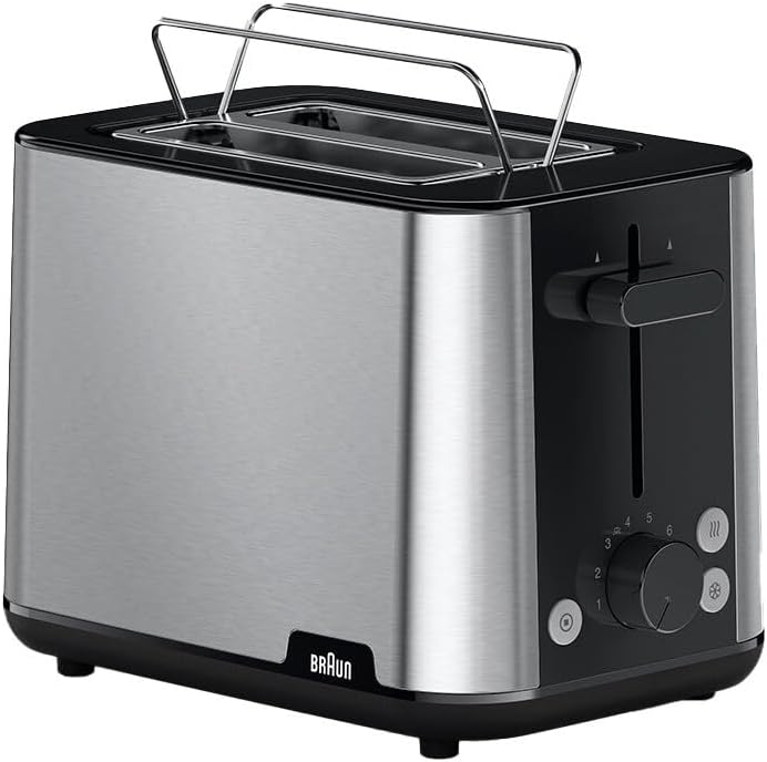 Пригответе златистокафявия си тост точно както го обичате – с тостера Braun PurShine. Той разполага с осем нива на изпичане, както и с функции за размразяване и претопляне. Включва и вграден подгревател за хлебчета за удобно затопляне на хлебчета, гевреци и кроасани.
