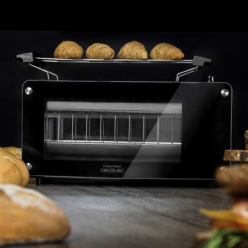Тостер Cecotec със стъклен прозорец и корпус от неръждаема стомана. SLOT XL екстра-анча с капацитет за два тоста. Включва поставка за хлебчета. visiontoast
