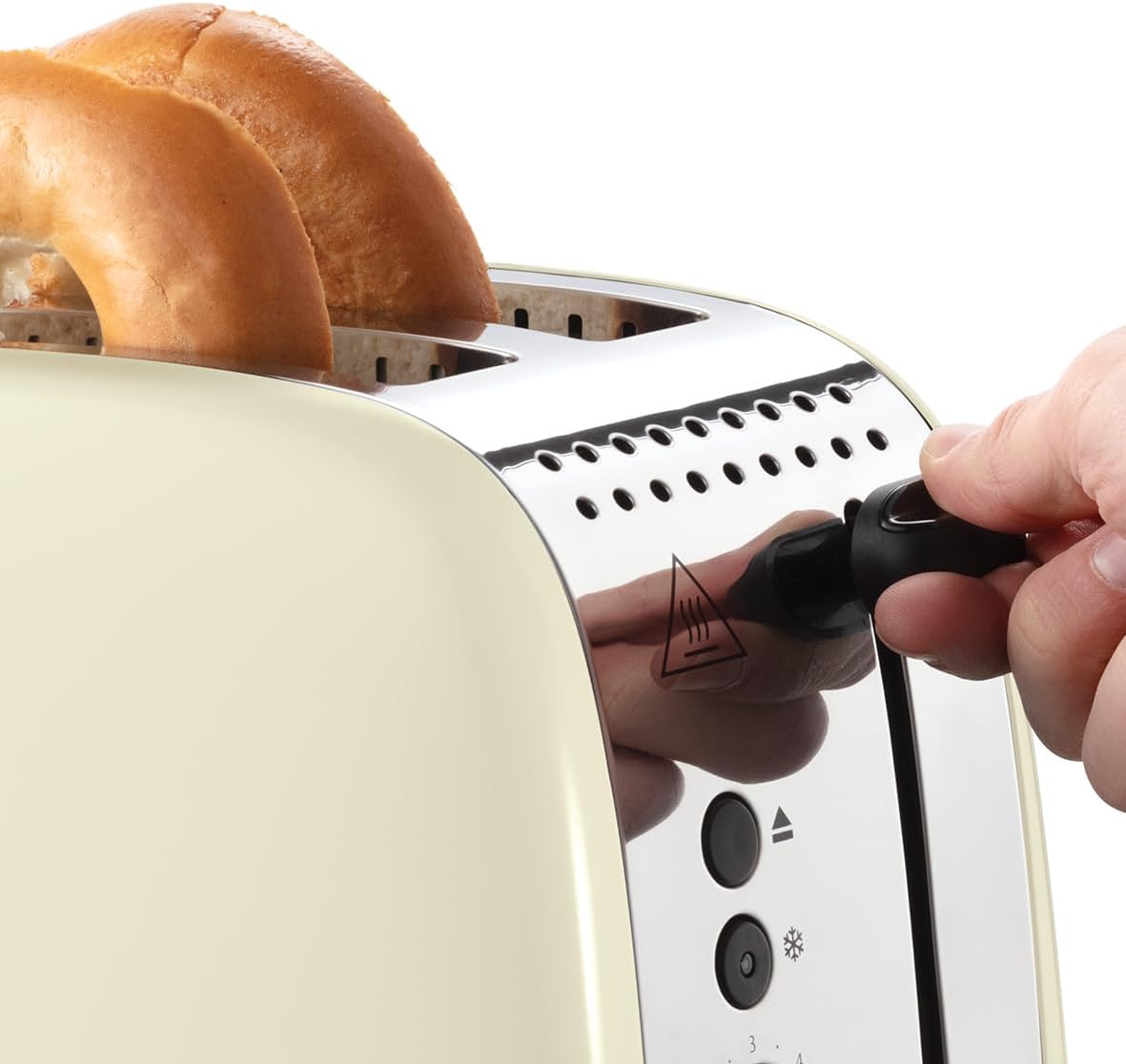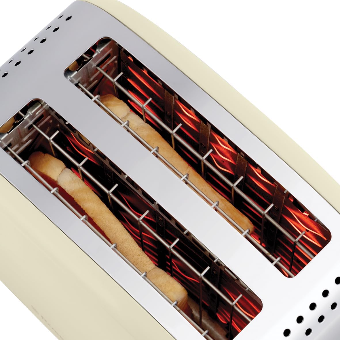 2 extra wide toast slots, lift and look, lifting function, 6 browning levels, defrosting, warming and stop function, crumb drawer, roll attachment