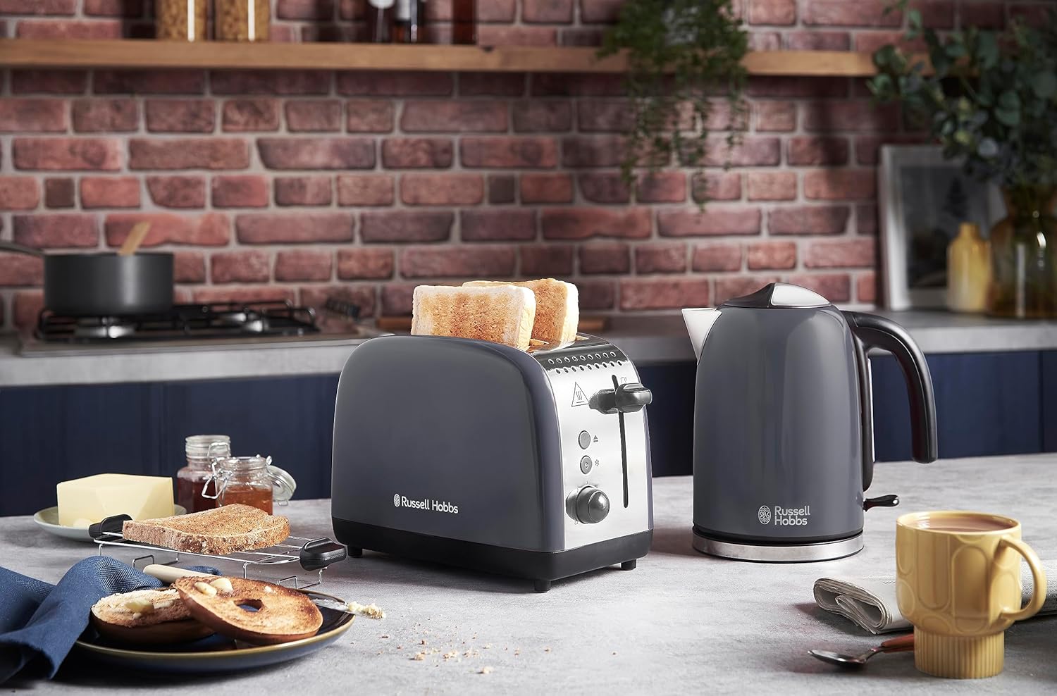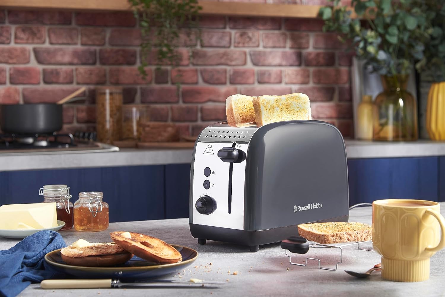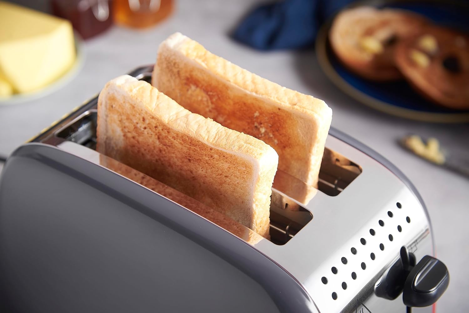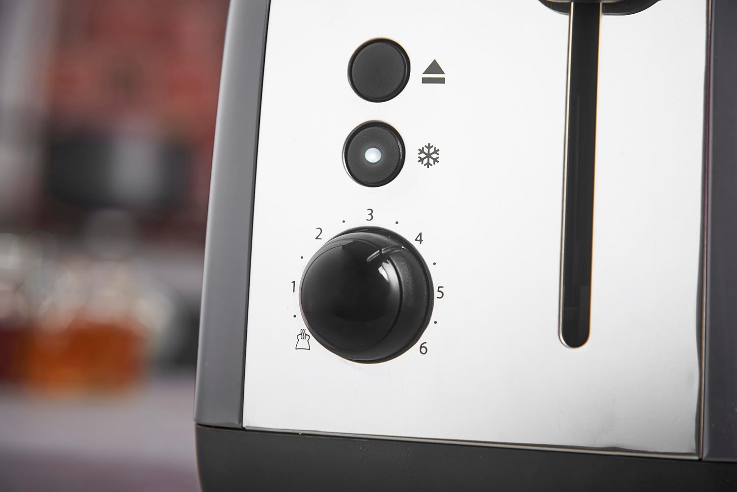 2 extra wide toast slots, lift and look, lifting function, 6 browning levels, defrosting, warming and stop function, crumb drawer, roll attachment