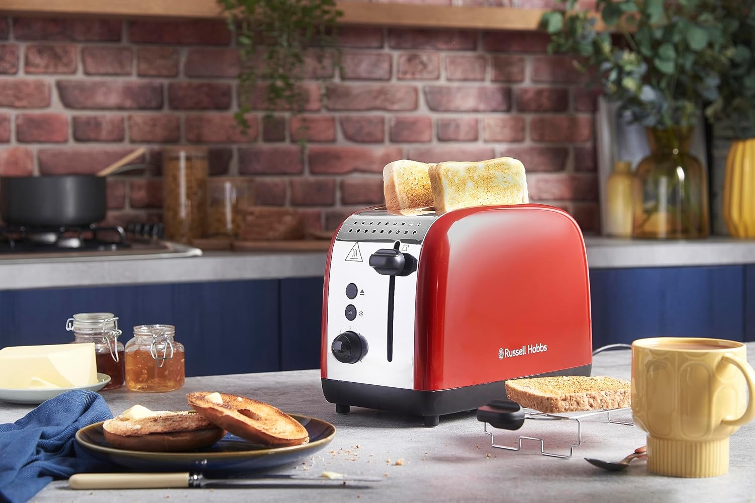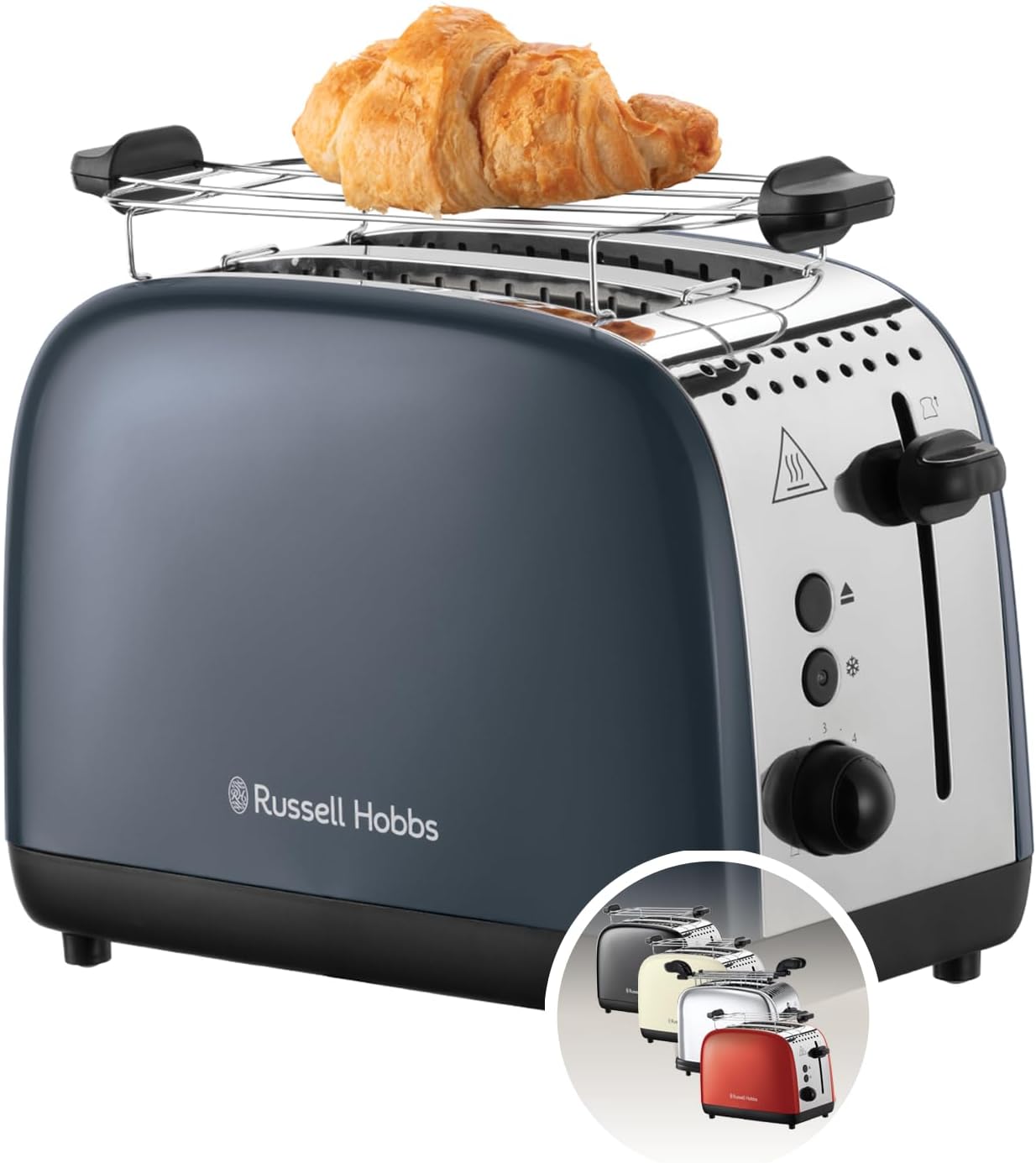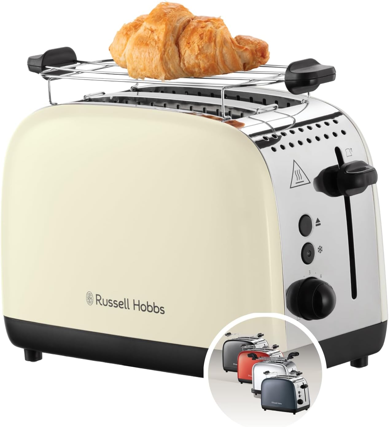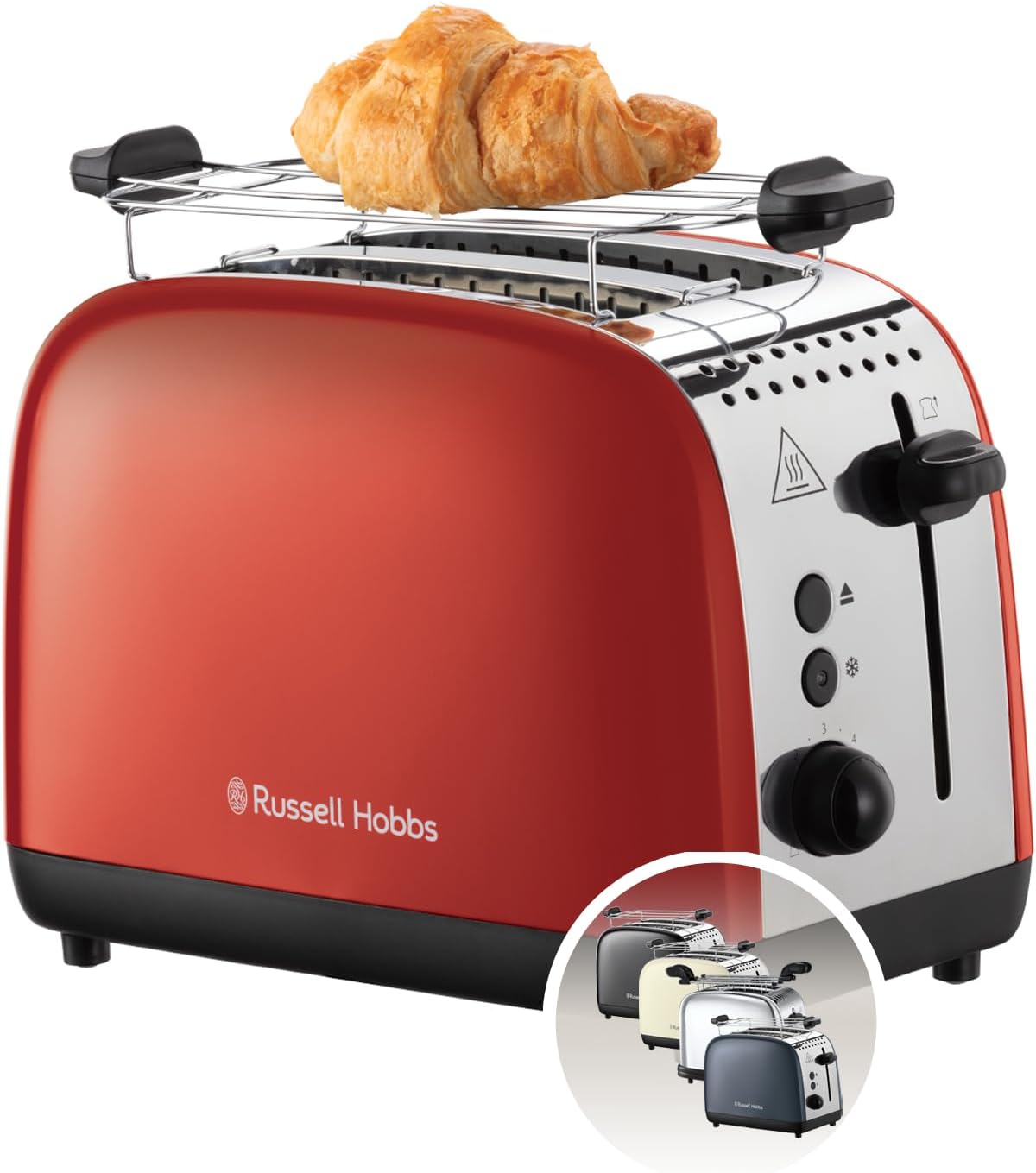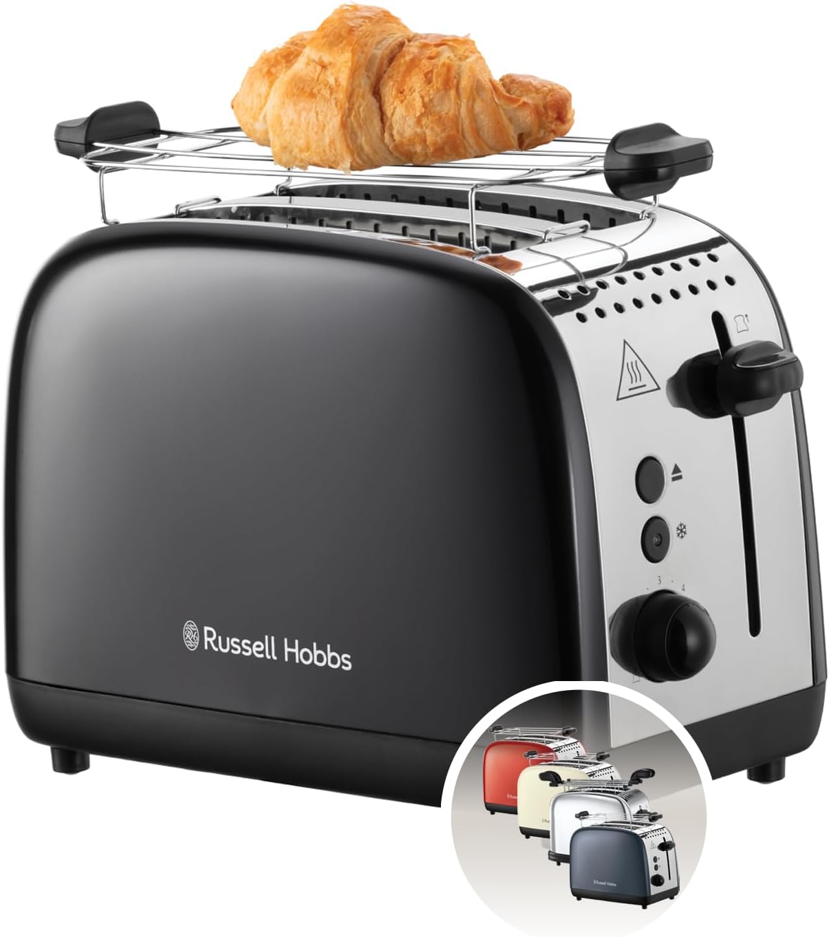 2 extra wide toast slots, lift and look, lifting function, 6 browning levels, defrosting, warming and stop function, crumb drawer, roll attachment