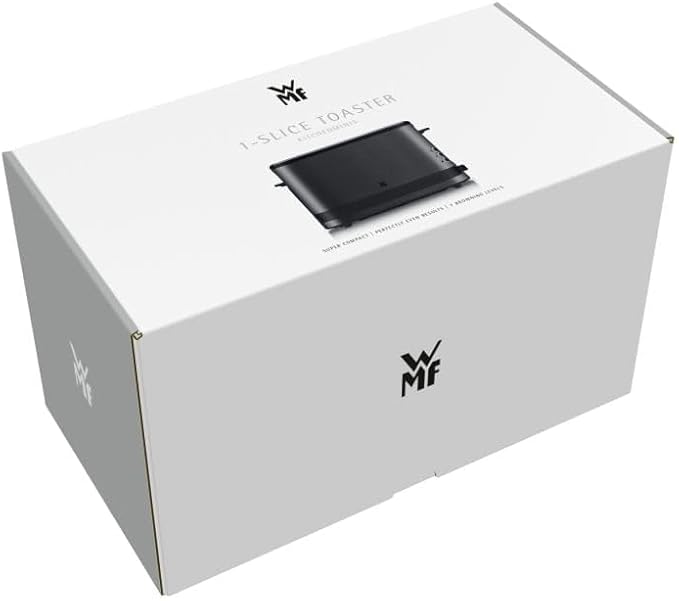 Тостер WMF Küchenminis за 1 филия с приставка за хлебчета, за 1 XXL филия, функция за размразяване, тостер с дълъг отвор и 7 нива на изпичане, 600 W, тостер от неръждаема стомана, матово черно