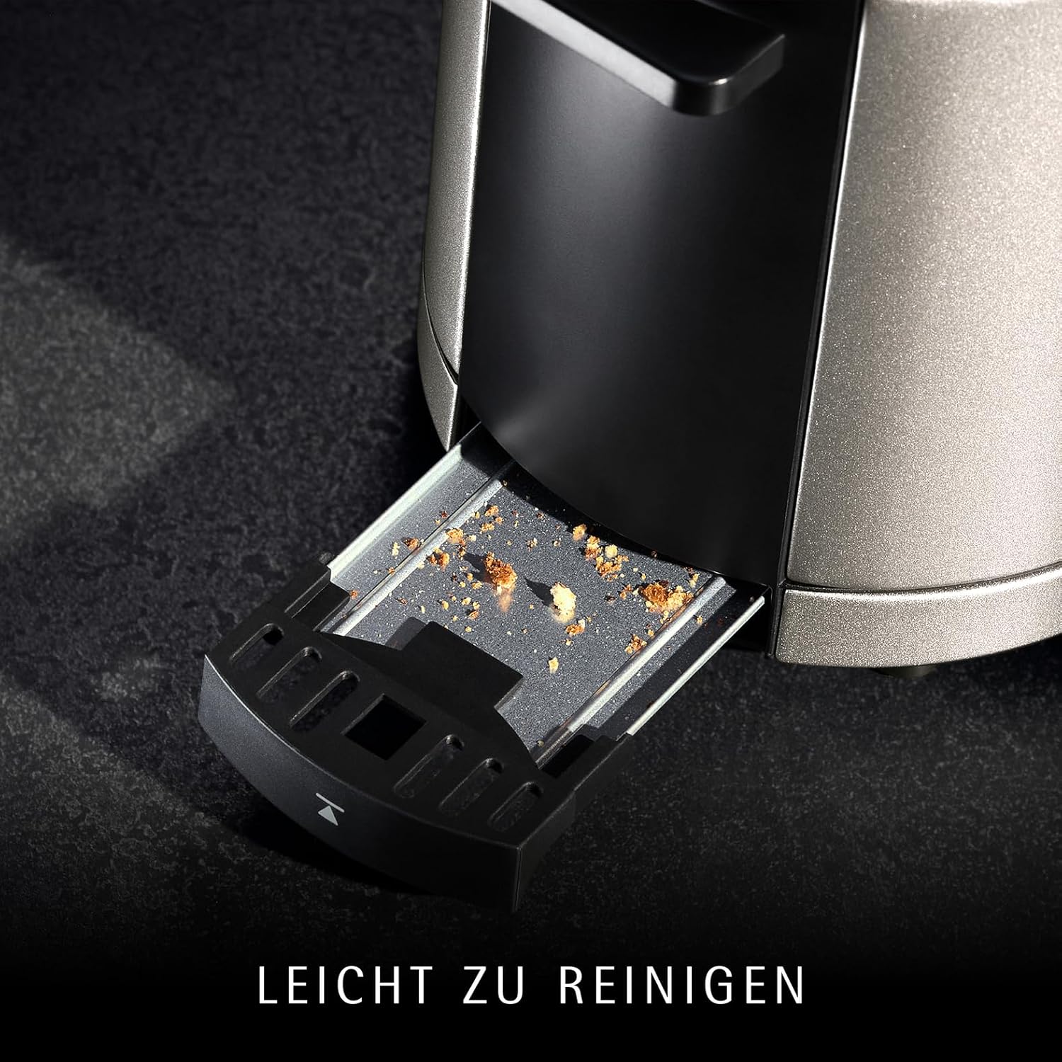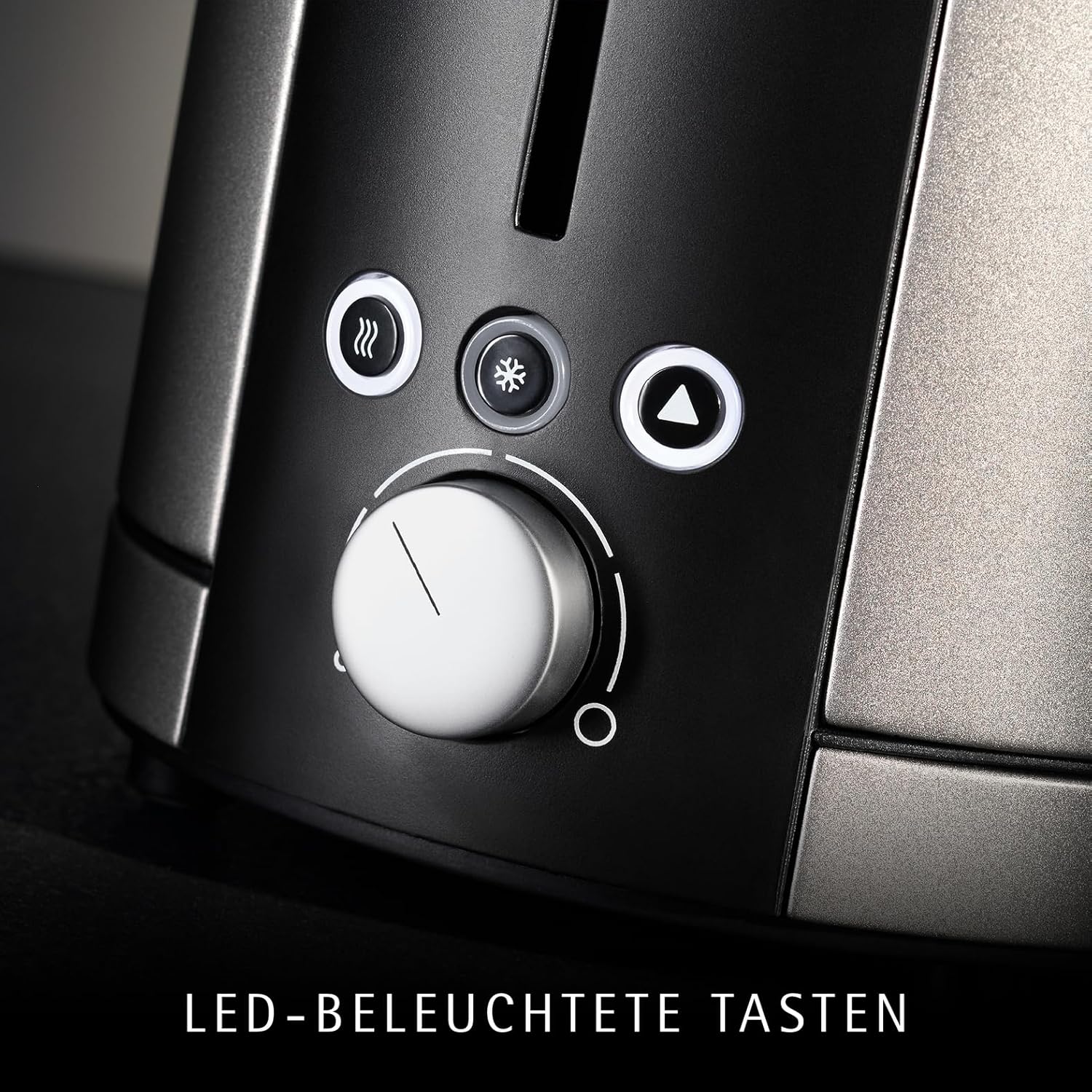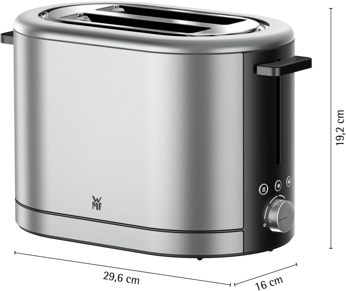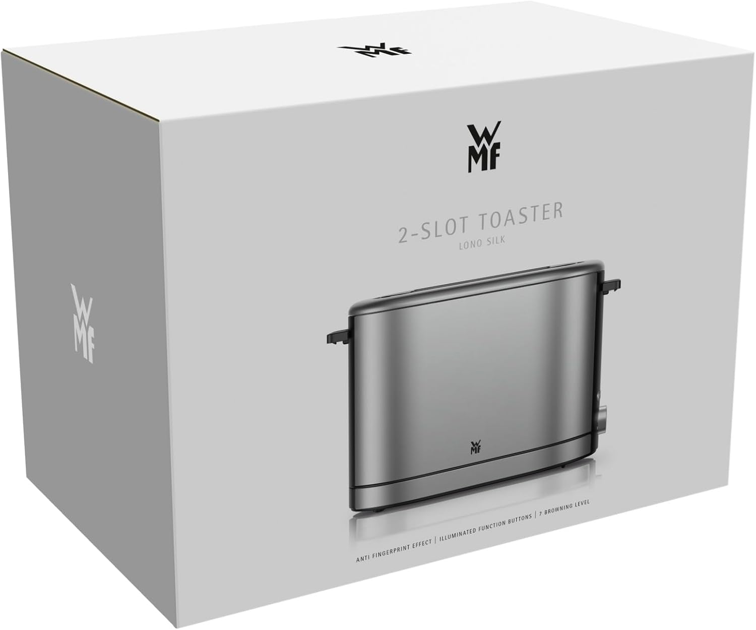 Тостер WMF Lono Silk, 2 филийки, неръждаема стомана, тостер с два слота с приставка за печене XXL, ефект против пръстови отпечатъци, LED функция, 2 филийки, отделение за трохи, 7 нива на изпичане, 900