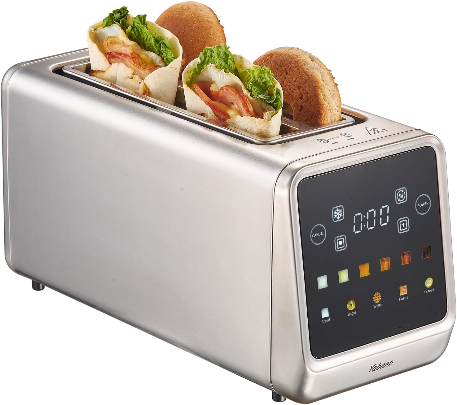 Тостер Yabano за 4 филии с тъчскрийн и функция памет, технология за печене на единична филия, таймер, функция за размразяване и претопляне, тостер от неръждаема стомана с 6 нива на изпичане, 5 програми за хляб