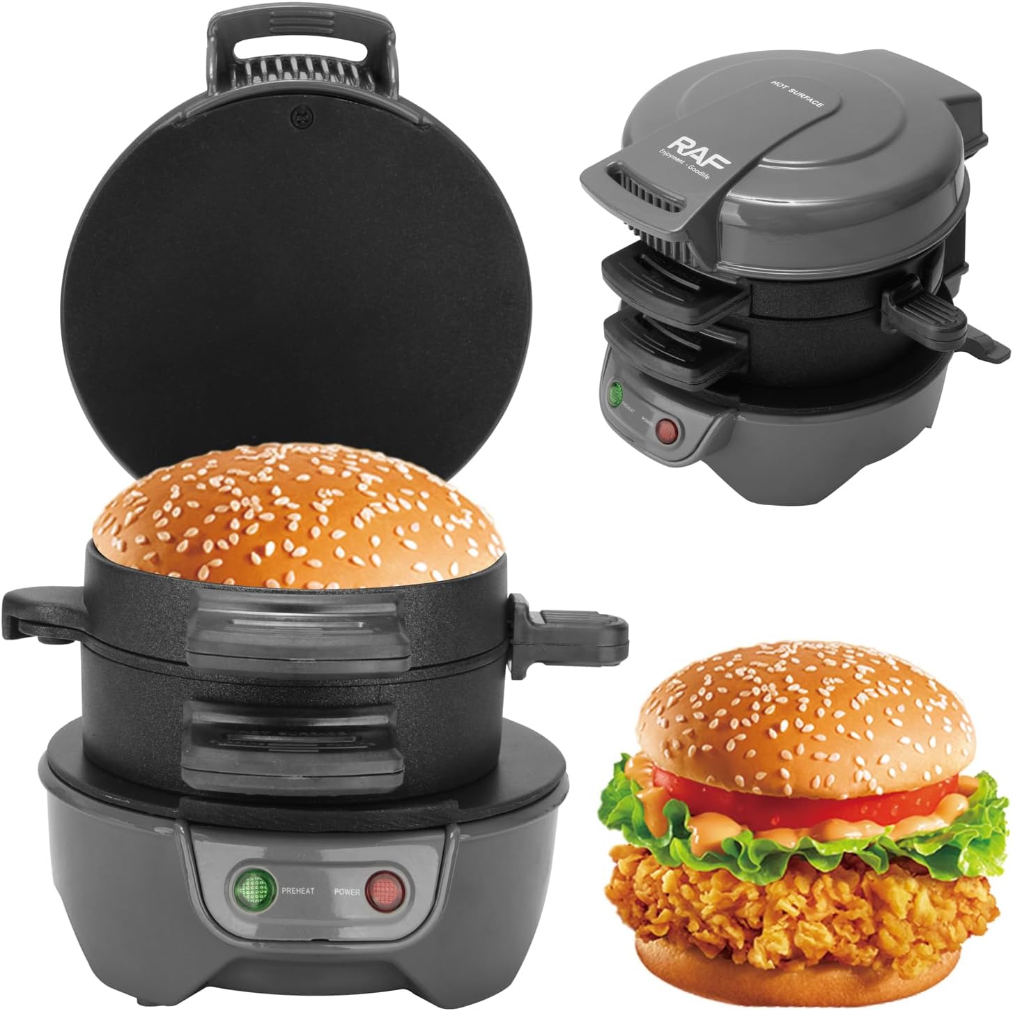 • Бързо и лесно: позволява ви да приготвите 1 богат сандвич/хамбургер само за няколко минути. Използвайте свои собствени пресни съставки, включително яйца, сирене и много други, и пригответе вкусни хлебчета за закуска в уюта на собствения си дом. Позволява ви да се насладите на 5-минутна закуска, спестявайки време и енергия.