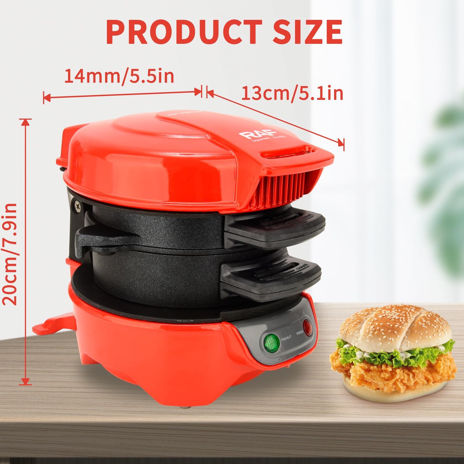• Бързо и лесно: позволява ви да приготвите 1 богат сандвич/хамбургер само за няколко минути. Използвайте свои собствени пресни съставки, включително яйца, сирене и много други, и пригответе вкусни хлебчета за закуска в уюта на собствения си дом. Позволява ви да се насладите на 5-минутна закуска, спестявайки време и енергия.