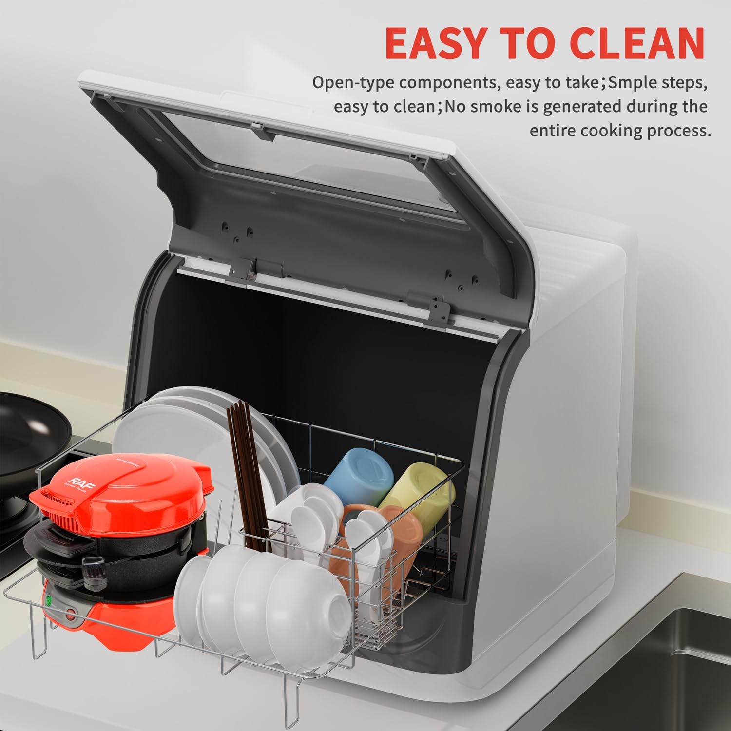 • Висококачествен материал: здрав корпус, здрав и издръжлив. Нагревателната плоча е изработена от алуминиева сплав с висока плътност и добро сцепление. Всички подвижни части могат да се мият в съдомиялна машина.