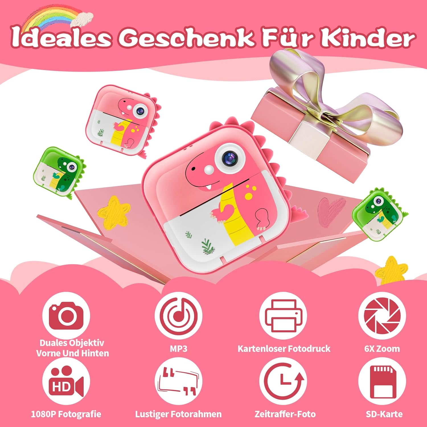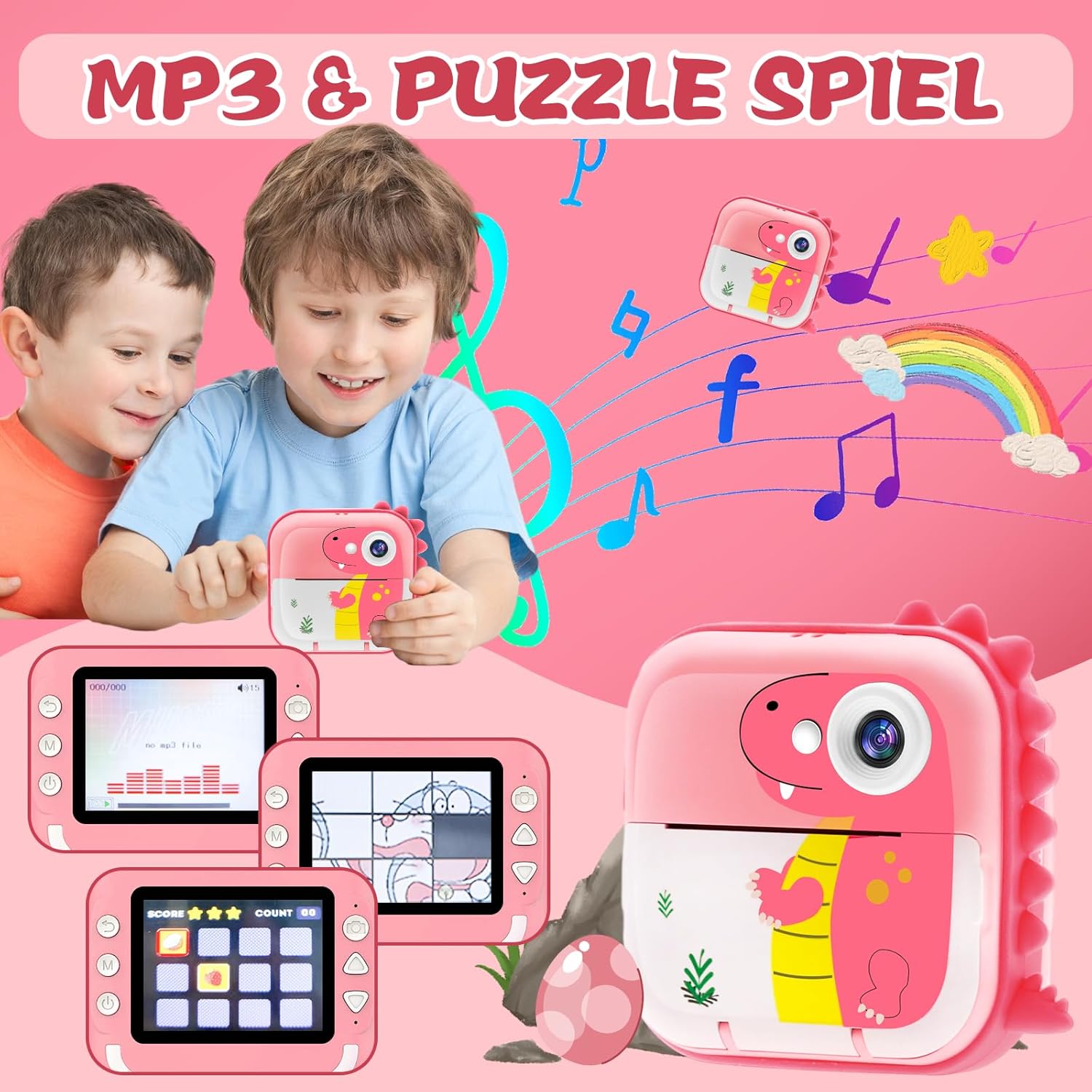 • Многофункционален фотоапарат за деца: можете да използвате този фотоапарат за моментални снимки, за да правят снимки, да отпечатват снимки, да записват видеоклипове, да възпроизвеждат MP3, да играят игри и да отпечатват снимките на мобилния си телефон. Този мощен детски фотоапарат за момичета и момчета е идеален инструмент за въведение в детската фотография и може да събуди интереса им към снимането.