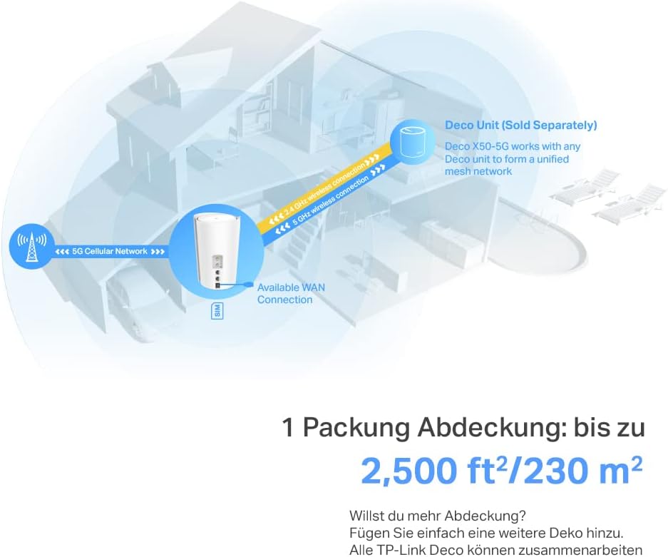 • Deco X50-5G работи с всички SIM карти в Германия и Австрия; може да работи и в повечето страни по света; моля, посетете местния уебсайт на TP-Link за повече информация.