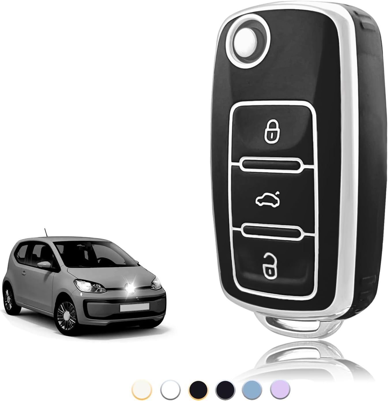 TPU калъф за ключ, калъф за ключ за кола VW Volkswagen Golf 4/5/6 Polo Up Jetta Caddy Beetle Multivan T5 Seat Ibiza Leon Skoda Fabia, защитен калъф за ключ - сгъваем ключ