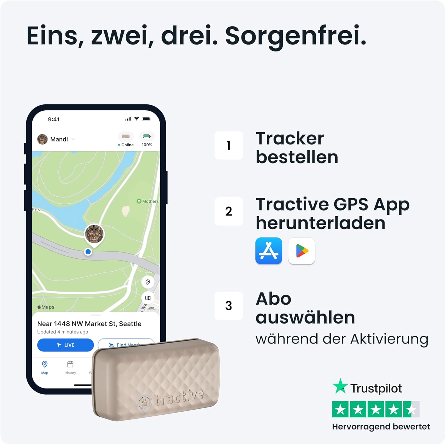 След като поръчате вашия тракер за котки, можете да изтеглите приложението Tractive GPS за iOS или Android. След това активирайте вашия тракер и изберете абонамент, който ви подхожда (месечен или за 1, 2 или 5 години). След като получите тракера, можете да го заредите с включения кабел и след това да го прикрепите към нашийника на вашата котка. И сте готови!