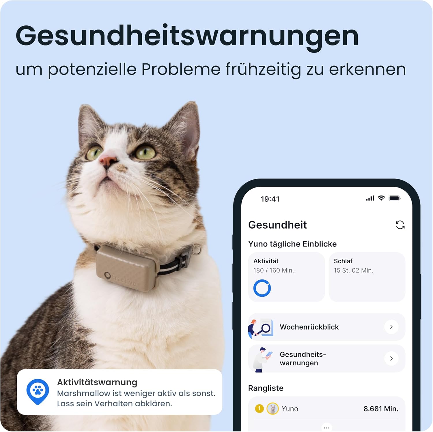 Tractive CAT Mini GPS тракер за котки - лидер на пазара, проследяване на живо, история на местоположението, здравни сигнали, проследяване на активността, включен нашийник, изисква се абонамент (кафяв)