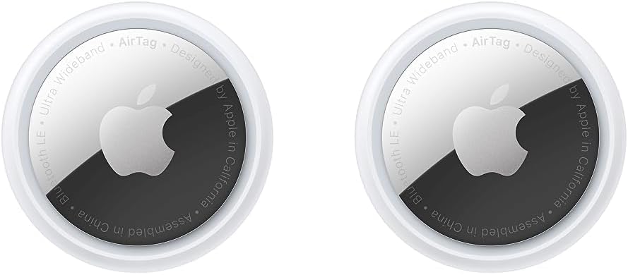 Тракер за вещи Apple Airtag, 1x CR2032 батерия (включена), IP67 защита от прах и вода, 2 броя, Сребрист/Бял